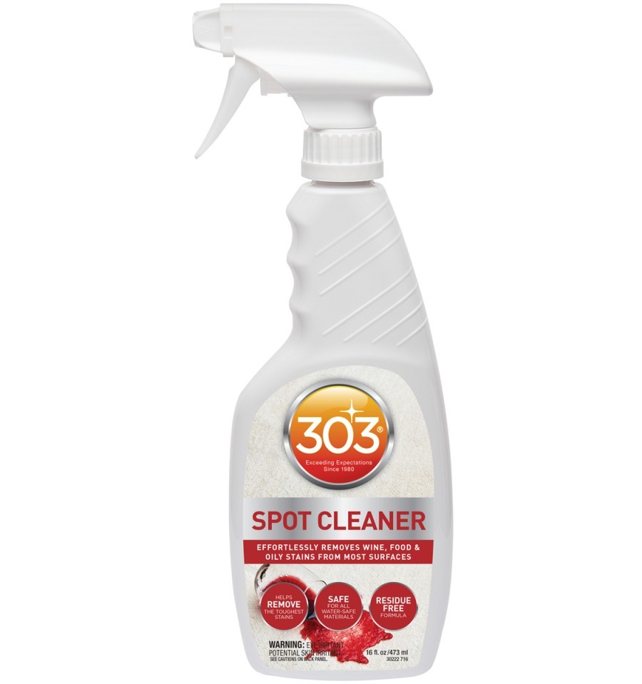 303 Cleaner & Spot Remover uses a proprietary formula of a separator, surfactant and wetting agent to separate and remove dirt, grease and other contaminants from surfaces. The product is safe and can be used on all fabrics and textile products. The effect of the cleaner increases with the use of hot water.Instructions on how to use the 303 Cleaner & Spot Remover