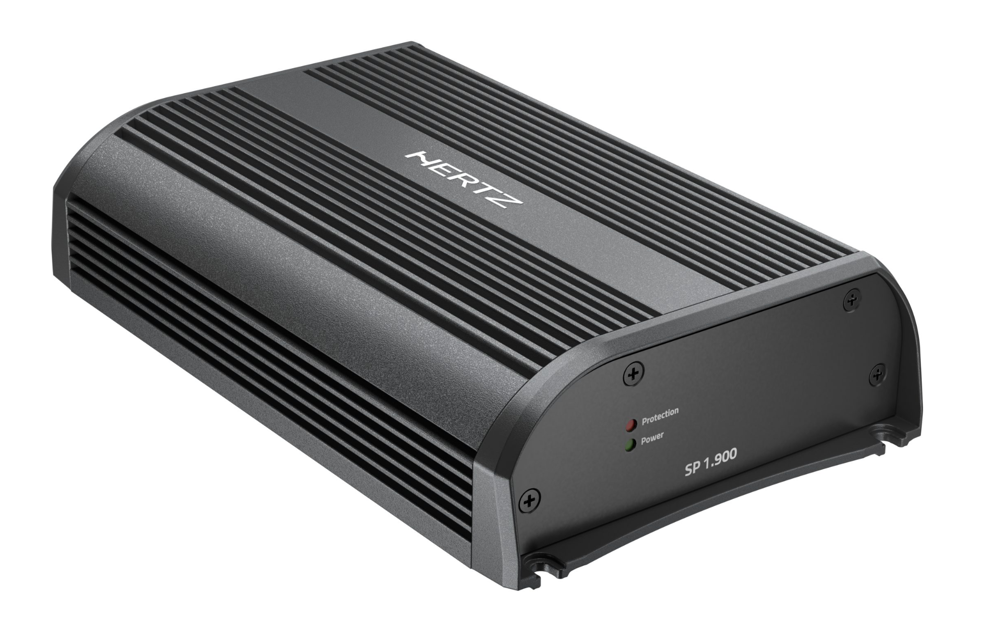 The mono amplifier Hertz SP 1.900 features the Hertz ADC (Advanced D-Class) output stage, achieving an efficiency of up to 87%. A maximum RMS power of 1000 W is available at 2 Ω and remains stable even at 1 Ω. Being an ultra-compact amplifier (211.6 x 130 x 49 mm) with impressive power, the SP 1.900 is an ideal choice for motorcycle mounting, under-seat installation in sports cars, and behind-seat installation in trucks.Main Features