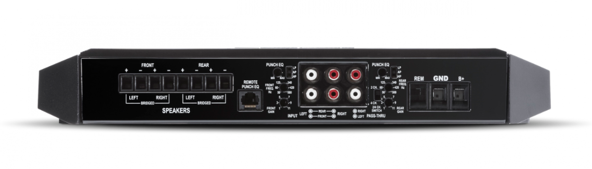 The Rockford Fosgate T600-4 perfectly balances a compact design and sufficient output power to operate high-performance audio systems. The four-channel configuration allows fine-tuning of a front component system or rear speakers. In addition, thanks to the integrated frequency crossover, it is possible to configure the rear channels to operate one or two subwoofers.