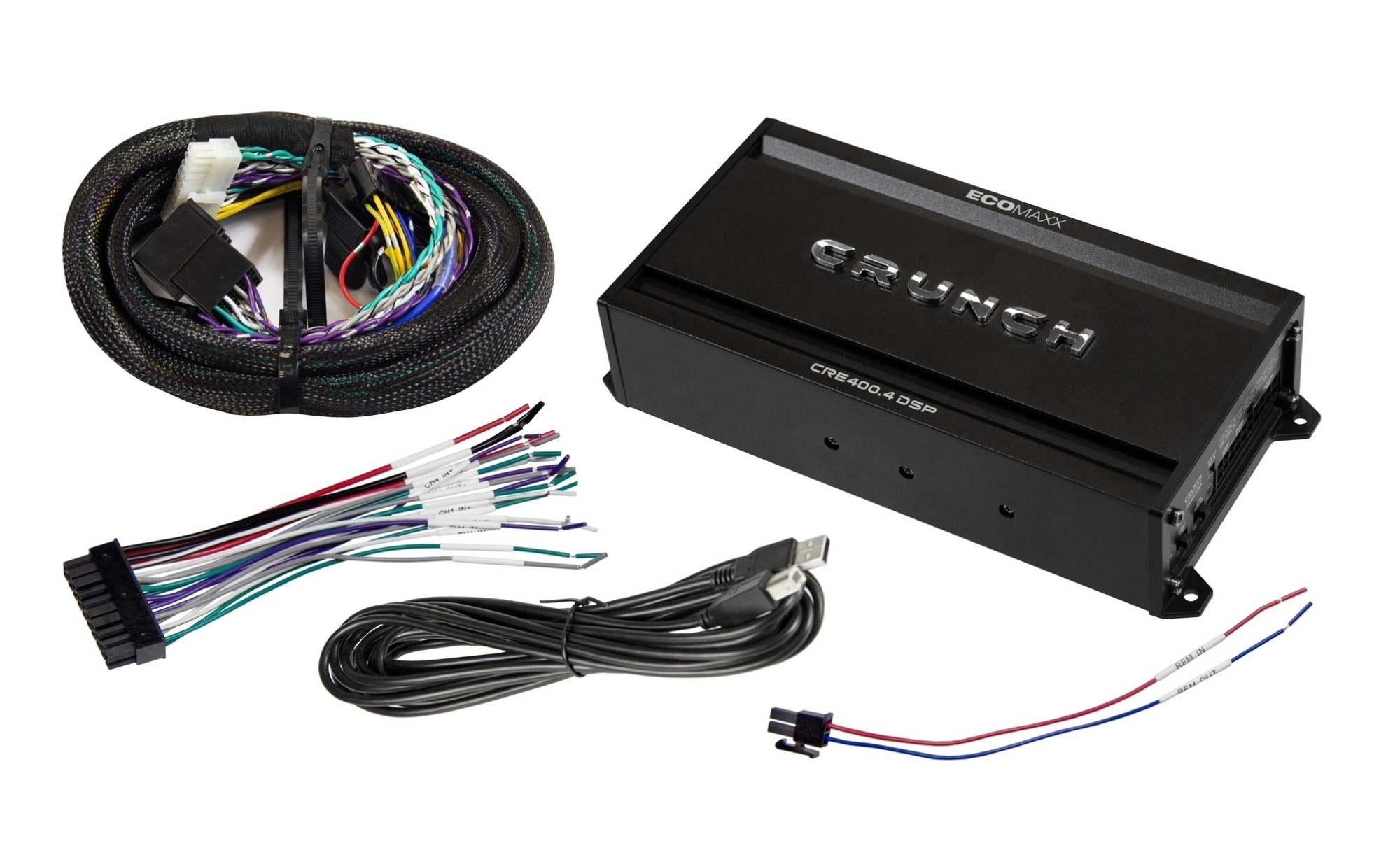 The alternative kit Crunch CRE400.4DSP-ISO offers the possibility of easy connection of the amplifier to many head units using the supplied 1-meter ISO cable. In addition, Crunch also offers ISO.M adapter cables that are designed for specific vehicle types and allow the installation to be tailored to the given car.
