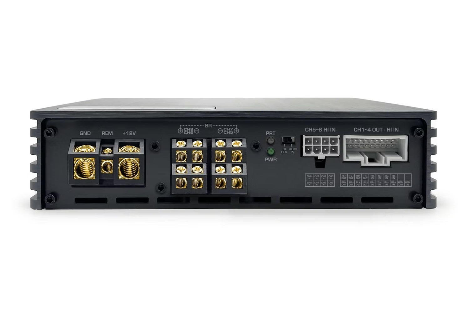 - 8-channel amplifier combining classes AB and D.