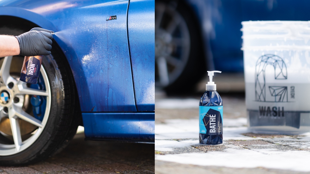 After decontamination we finally get to the actual car wash. This will remove remaining chemicals from the previous steps and thoroughly clean the paint from all contaminants. Before washing, decide whether you will apply paint protection in the final step. If so, we recommend using a pure, pH-neutral shampoo without added waxes or other gloss-enhancing ingredients, for example Gyeon Q²M Bathe. If you do not want to continue with applying a new protection or if the paint already has functional ceramic protection, you can wash the paint with a shampoo containing wax or a more durable ceramic. Such a car shampoo will give the paint gloss and hydrophobic properties for several weeks to months and regular washing will keep the paint always protected, although with limited properties compared to full protection. For washing you will also need a microfiber wash mitt, a bucket for water (ideally two) and a drying towel. You can find more information in our older article how to wash a car.