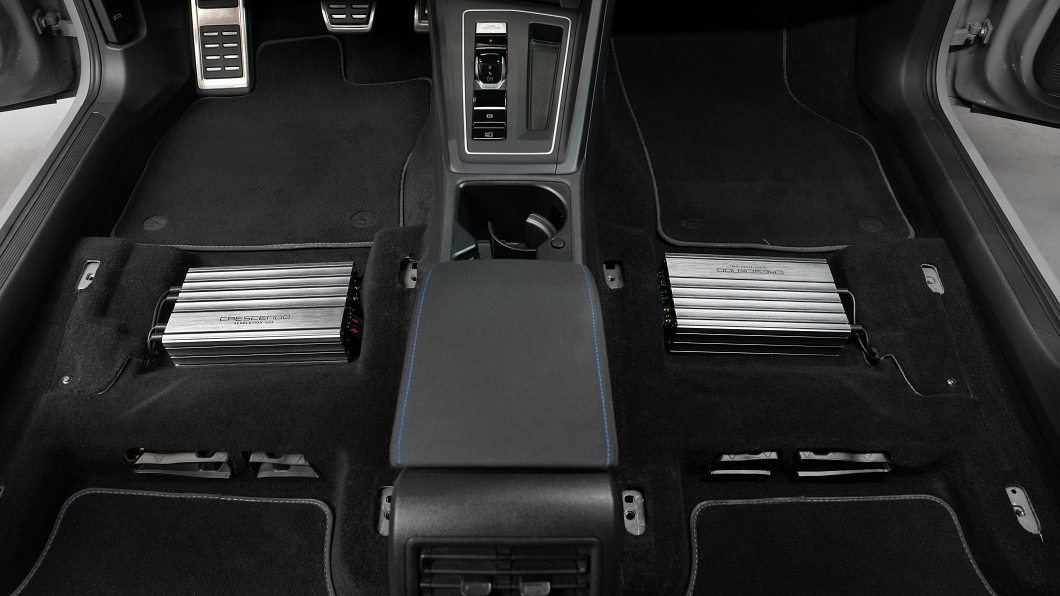 Another big advantage of the chosen combination is the compact design of both amplifiers. They fit easily under the seats, so they don't take up any space in the interior or luggage compartment. Thanks to the front stage concept, it was not necessary to use a six-channel amplifier – the entire system is designed efficiently, without unnecessary extra channels, which saves space and costs without negatively affecting the resulting sound quality.