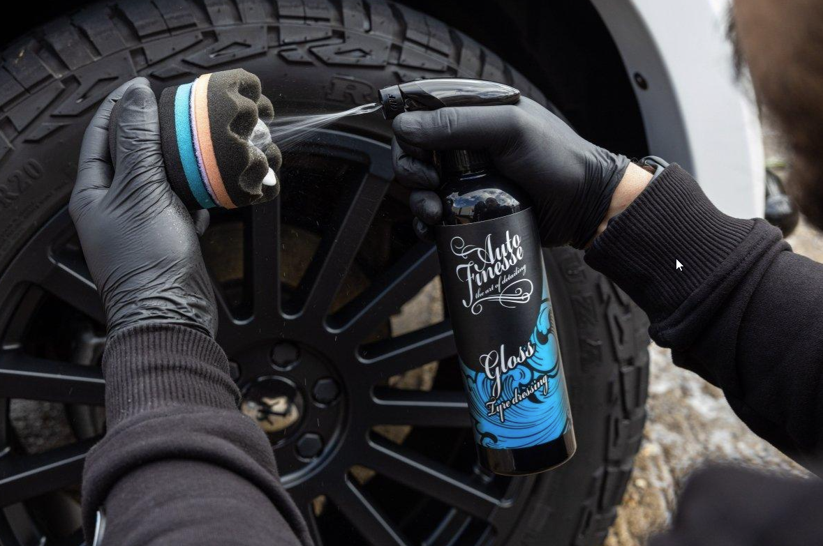 - For a perfect application, we recommend using the Auto Finesse Tire&Trim applicator. Always apply Gloss Tire Dressing to the applicator facing away from the car.