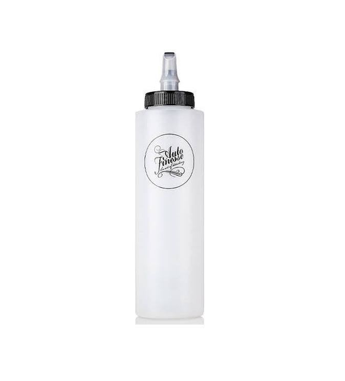 Auto Finesse Pro Polish Bottle is a 350 ml ergonomic bottle for dispensing polishing pastes. The Pro Polish Bottle offers increased control over the dosing of polishing pastes or mixtures. Together with the easy-to-use, ergonomic 350 ml size, it helps to simplify and clarify the paint correction processes. This professional polishing accessory is made of soft, squeezable plastic that has been specially designed to withstand long-term use. It has a specially developed pull cap that not only seals your products and prevents premature drying, but also allows precise dosing of the paste onto the disc. This clear AF branded bottle is suitable for use with any abrasive compound or polish, fully washable and reusable.