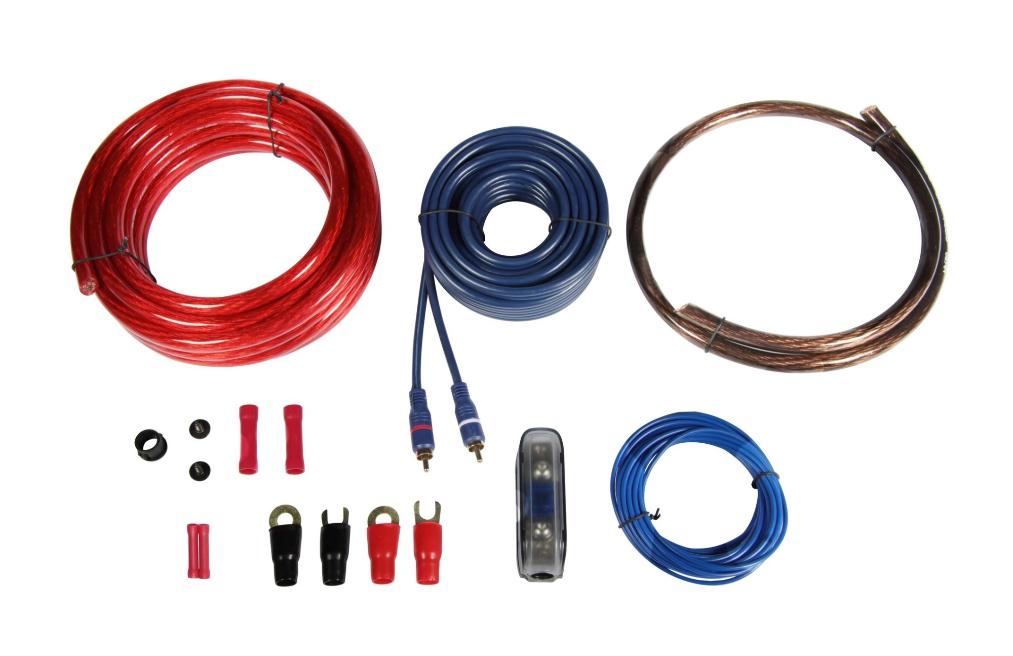 cable set, 20 mm² power + ground CCA cable, RCA, fuse holder, accessories