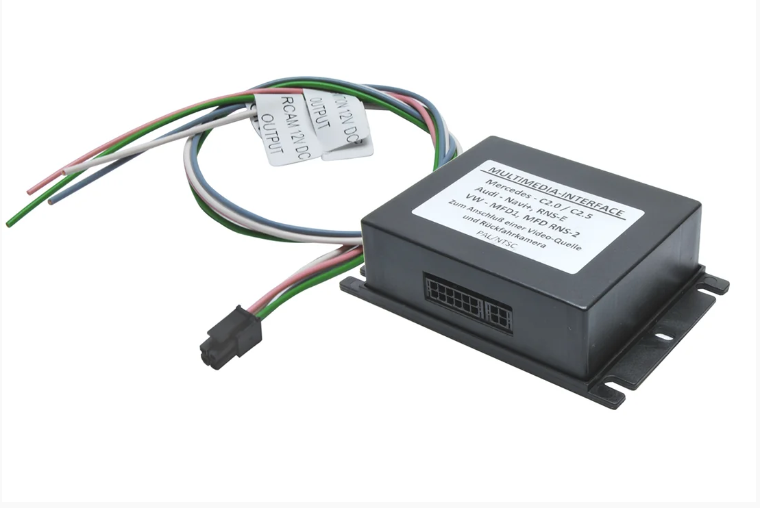 Universal AV adapter for cars with OEM navigation.- 1x AV Audio + video input.