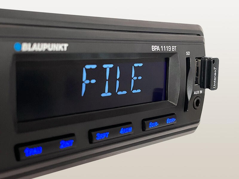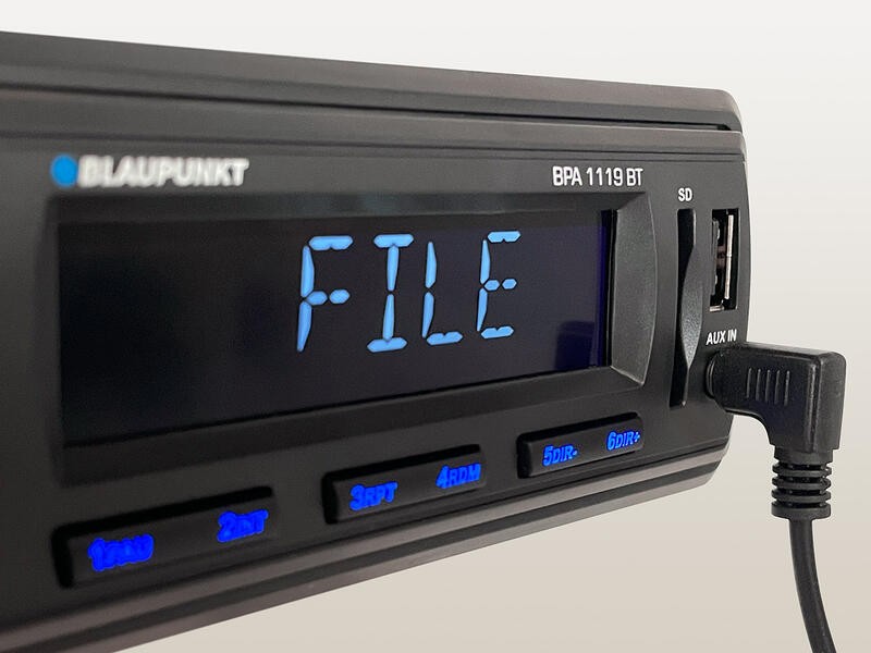 reliable 1DIN car radio with Bluetooth handsfree and audio streaming, FM tuner with RDS, USB/SD playback and AUX input for comfortable listening to music and calls while driving