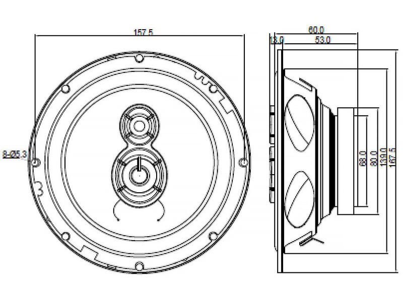 coaxial speakers, Ø 165 mm, 35 W RMS, 4 Ω, 91 dB (2.83V/1m), mounting depth 53 mm