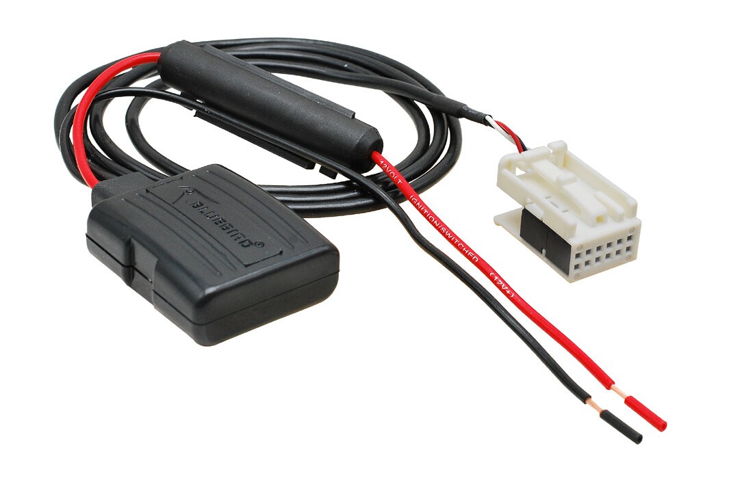 Bluetooth audio streaming (A2DP) adapter enables wireless music transfer from a mobile phone to the audio input for OEM car radios in BMW 3 cars