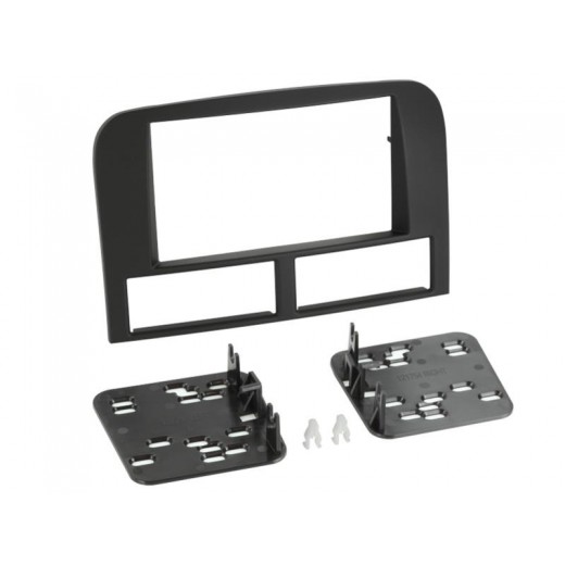 - The dimensions of the opening correspond to the dimensions of the front panel of a branded 2DIN car radio (Kenwood, Alpine, Sony, Clarion, JVC, Pioneer).