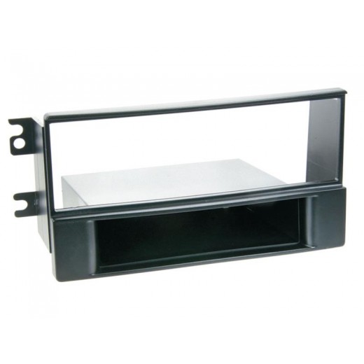 - The dimensions of the opening correspond to the dimensions of the front panel of a branded 1DIN car radio (Kenwood, Alpine, Sony, Clarion, JVC, Pioneer).