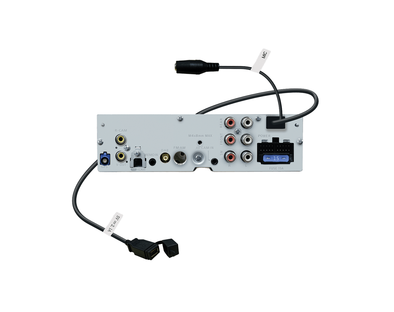 | USB inputThe USB input of the car radio is used to connect a USB flash drive or smartphone. Today, playing music via USB is the most popular way to listen to music in the car. The USB input can be front (on the front panel of the car radio) or rear (on the back of the cable). | Yes (1 x rear input) |