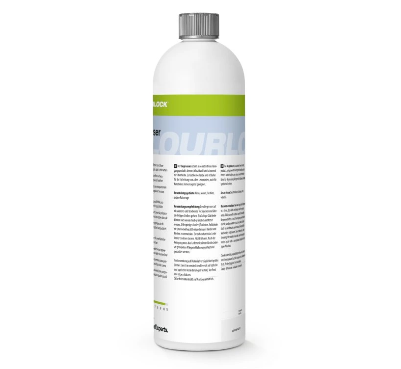 Solvent-free degreaser that effectively and gently cleans greasy spots on leather and synthetic leather without dissolving paint, 1 l