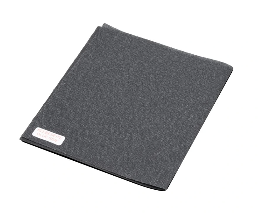 High-strength non-woven fabric in black design, coated with thermoreactive adhesive, is intended for patching holes, cracks and for strengthening deeper cracks during renovation of the leather surface. Thanks to its small thickness and evenly applied thin layer of glue, it does not harden at the repaired place or mark the glued place on the upper side of the skin. Dimensions: 250 x 150 mm.| Catalog number | 49998404 |