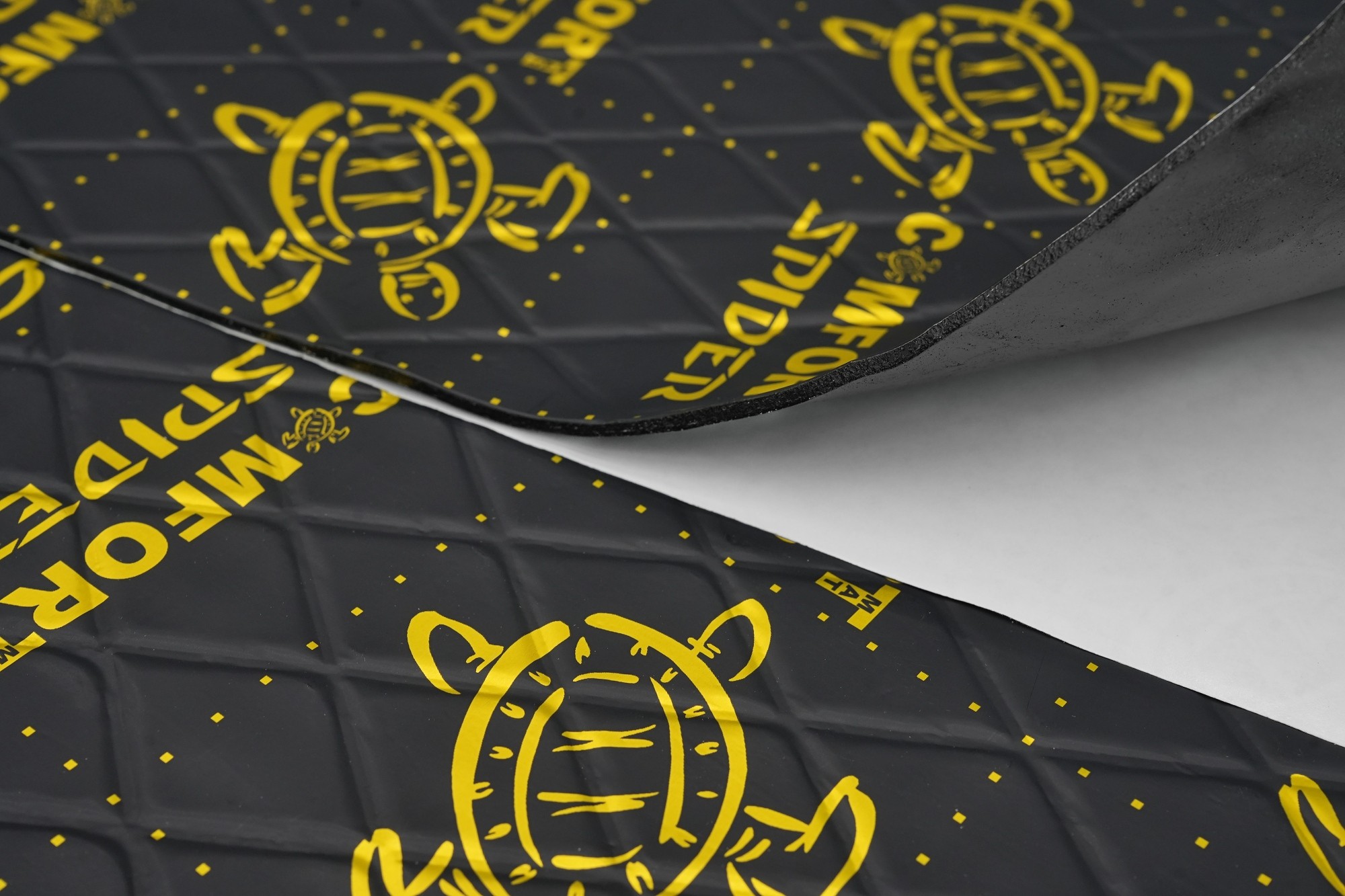 Comfortmat Spider is a new generation of vibration-damping material that replaces the popular G-Line series (G3 and G4) and brings a significant technological advance in every respect. With a thickness of 3.5 mm and an acoustic loss factor MLF = 0.45, it ranks among the most effective anti-vibration materials for areas with medium and high vibration loads. The core of Spider is the new-generation Poison sealant, made from a blend of special polymers that provides excellent adhesion to metal surfaces, high mechanical strength and resistance to external influences. The Scale One aluminum foil from a new alloy has a matte surface that improves adhesion with the second soundproofing layer while giving the material an exceptional look. Comfortmat Spider is fully waterproof, has anti-corrosion properties and retains stable characteristics even at extreme temperatures. Excellent adhesion (16 N/cm) ensures a secure bond to the bodywork and long-term effectiveness.