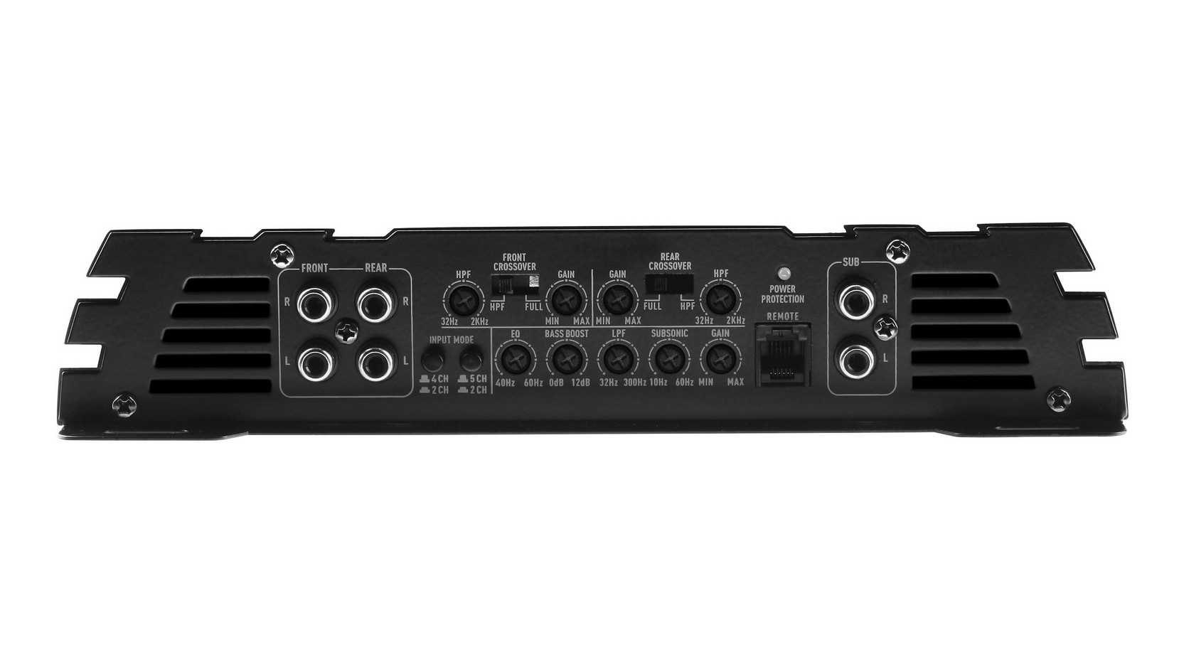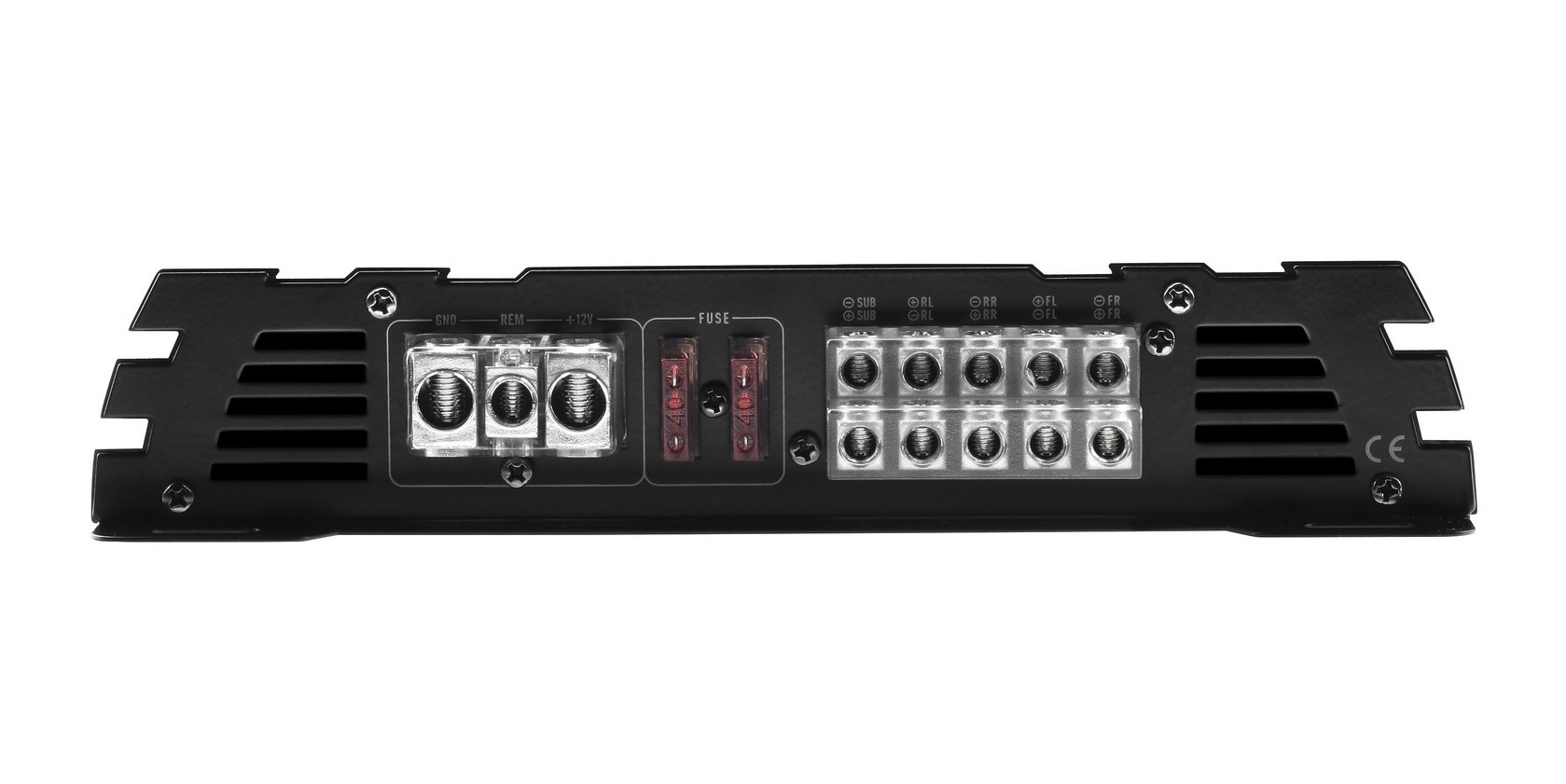 4-channel amplifier, 4 x 75 + 1 x 200 / 350 W RMS (4 / 2 Ω), class AB + D