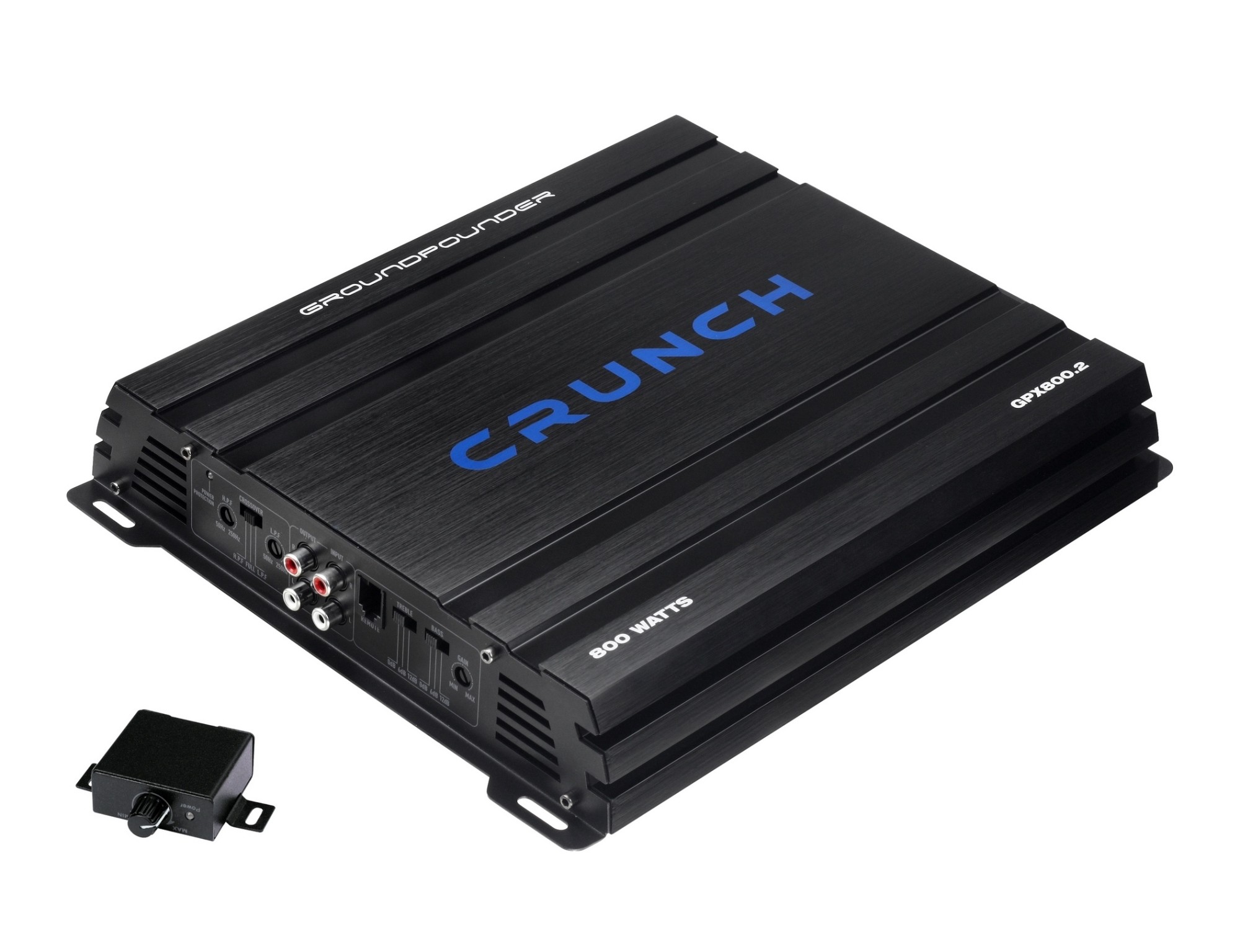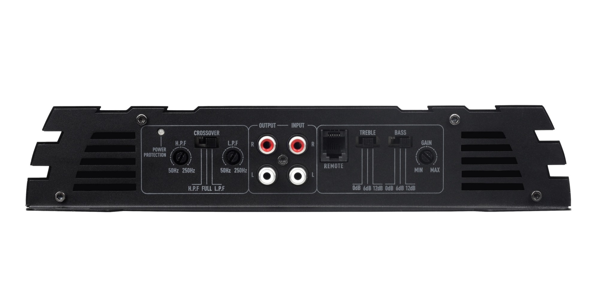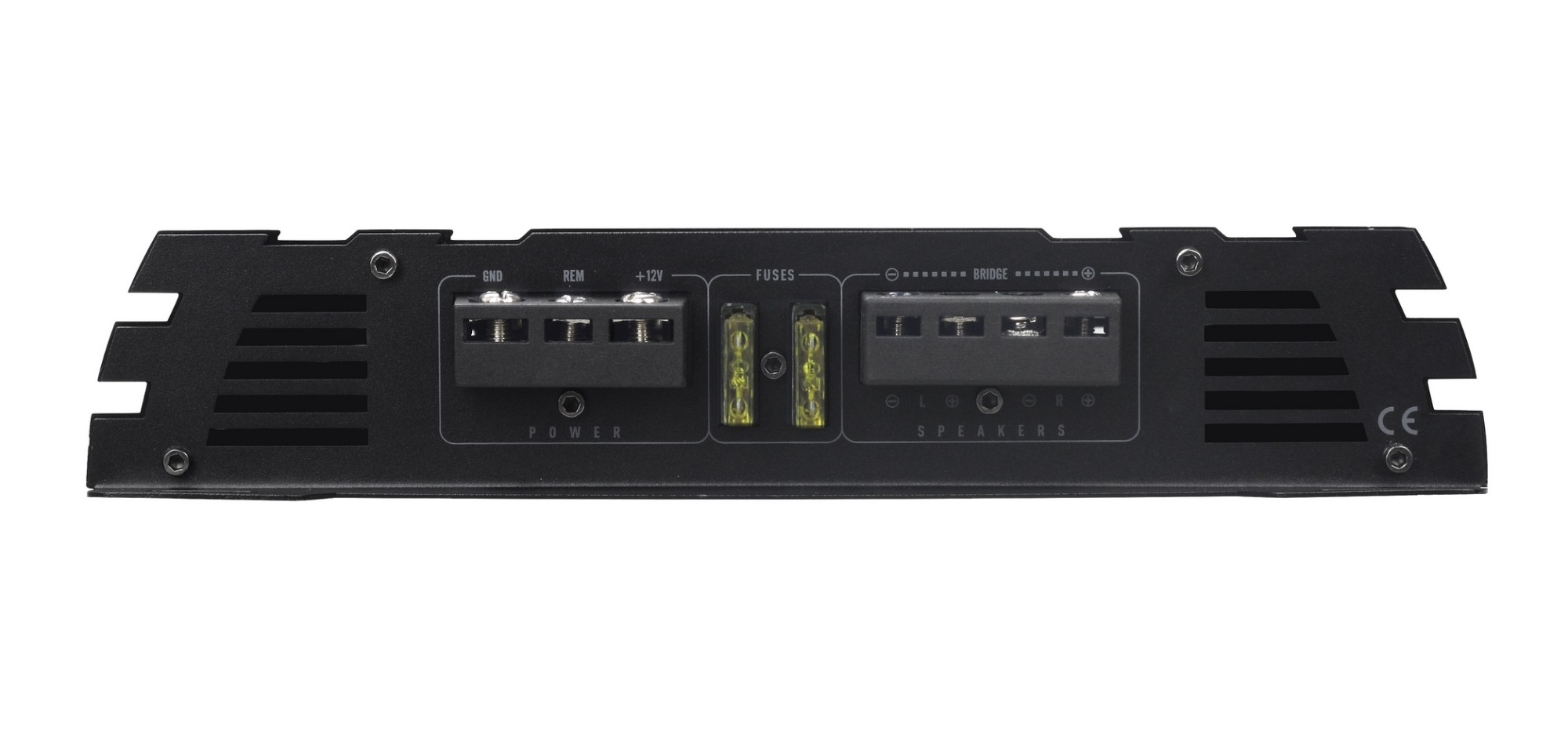 2-channel amplifier, 2 x 110 / 1 x 400 W RMS (4 Ω), 2 x 220 W RMS (2 Ω), class AB, remote control