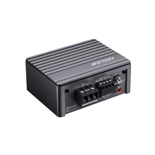 Ultra-compact, flexible, and powerful – the new PA amplifiers are the successors of the ETON MICRO series, which received numerous awards. The monoblock PA 1, two and four-channel models PA 2 and PA 4 are completely newly developed and focus on optimal performance with the smallest possible dimensions for easy installation. Small, smaller PA with minimal dimensions of 110 x 85 x 45 mm (PA 2), the 2-channel amplifier can be flexibly integrated into any vehicle. The PA series offers top-quality electronics in a beautifully designed casing made of simple die-cast aluminum, anodized in a matte bronze finish. The aluminum cast housings function as heat sinks with their entire surface, ensuring highly efficient thermal management. The top plate is removable. PA amplifiers offer top control, with all adjustment options accessible from the top of the amplifier, but hidden under the top plate once the setup is complete. It covers all setup needs imaginable: high-pass and low-pass filters, subsonic filter (PA 1), adjustable high-level input voltage, adjustable high-level input resistance (EPS load), and gain control. PA amplifiers continue to impress with small but practical design features, such as a setup tool integrated into the heat sink for uncomplicated setup execution. Removable power and audio signal connectors and variable mounting legs complement the thoughtfully designed feature set of the PA series. Another bonus is the stackable design of the amplifiers for installing two identical models on top of each other. The internal values are no less impressive - multi-layer boards, high-quality electronic components, and top-notch manufacturing form the basis for the advanced class D amplifier circuits, which are highly efficient. It offers top SQ for demanding listeners, with the lowest distortion and highest control. Whether it's a four-channel amplifier for operating a car audio system or a monoblock for powerful subwoofers - the PA series offers the right amplifier for every requirement and use.