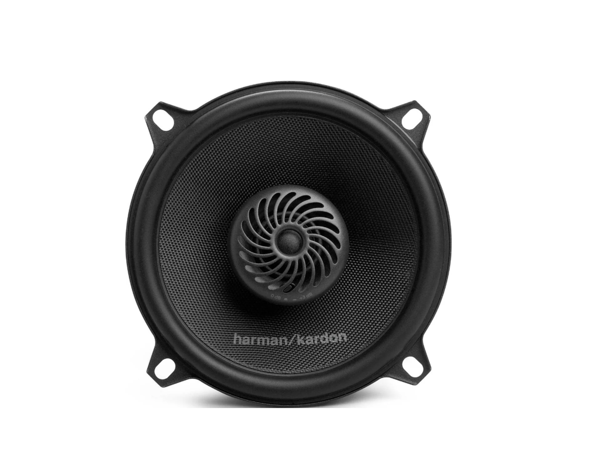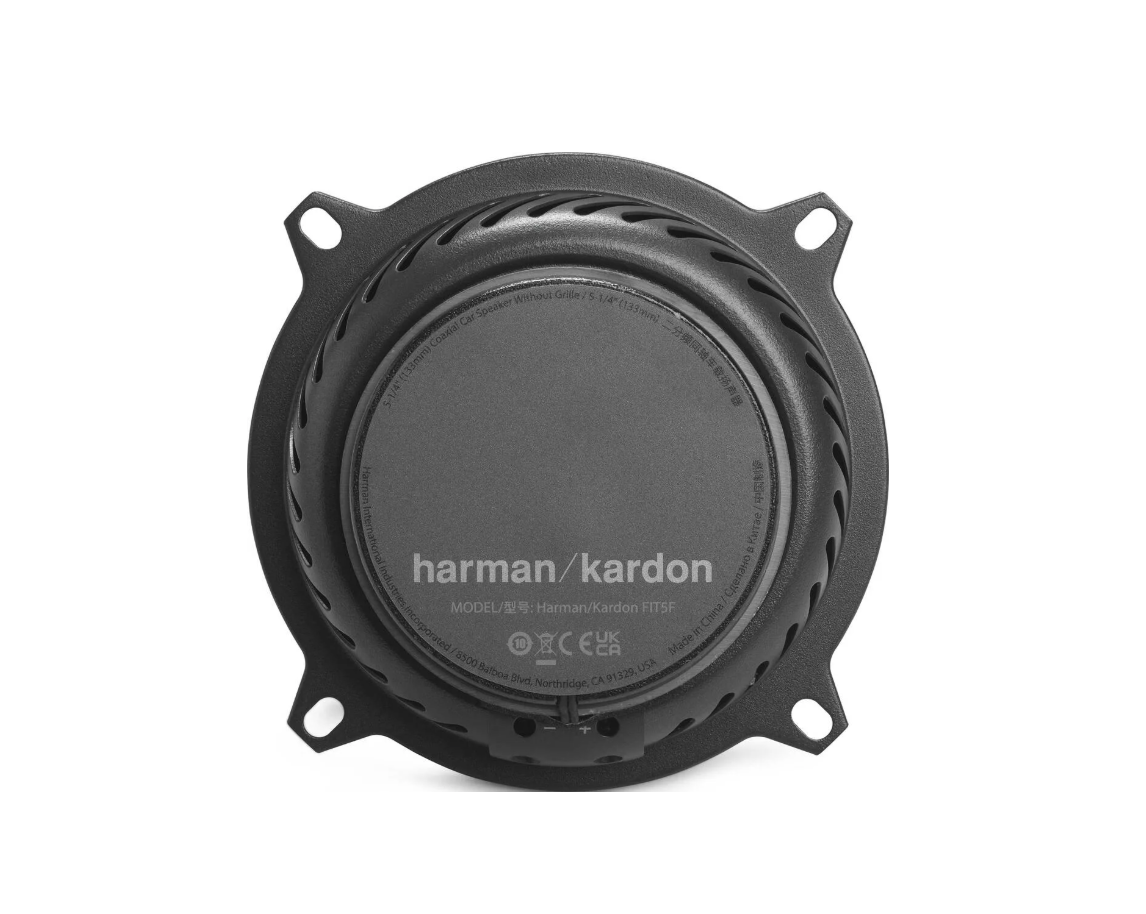 Harman/Kardon FIT5F are high-quality 5.25" coaxial car speakers that deliver a clean, energetic and detailed sound for everyday listening as well as more demanding audio installations. They are designed to provide a balanced performance across the full frequency range while maintaining compact dimensions suitable for a wide range of vehicles. This makes them an excellent choice for drivers who want to replace factory speakers with a significantly better solution featuring the typical Harman/Kardon sound signature. The product page lists a 5-1/4" coaxial speaker, 35 W RMS power, 280 W maximum power, 90 dB sensitivity, frequency response 60 Hz to 40 kHz and 4 ohm impedance.