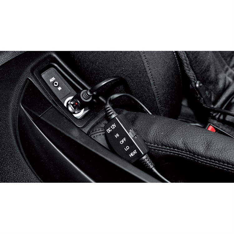 Heated seat cover with thermostat and 12 V power supply. Black high-quality design. Universal use for all vehicles. Simple installation on the seat using rubber straps. The cover is powered from the cigarette lighter connector (12 V). The built-in thermostat ensures compliance with the set heating values. High-quality material resistant to abrasion.