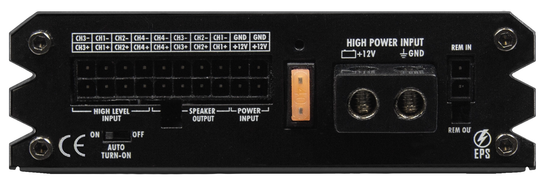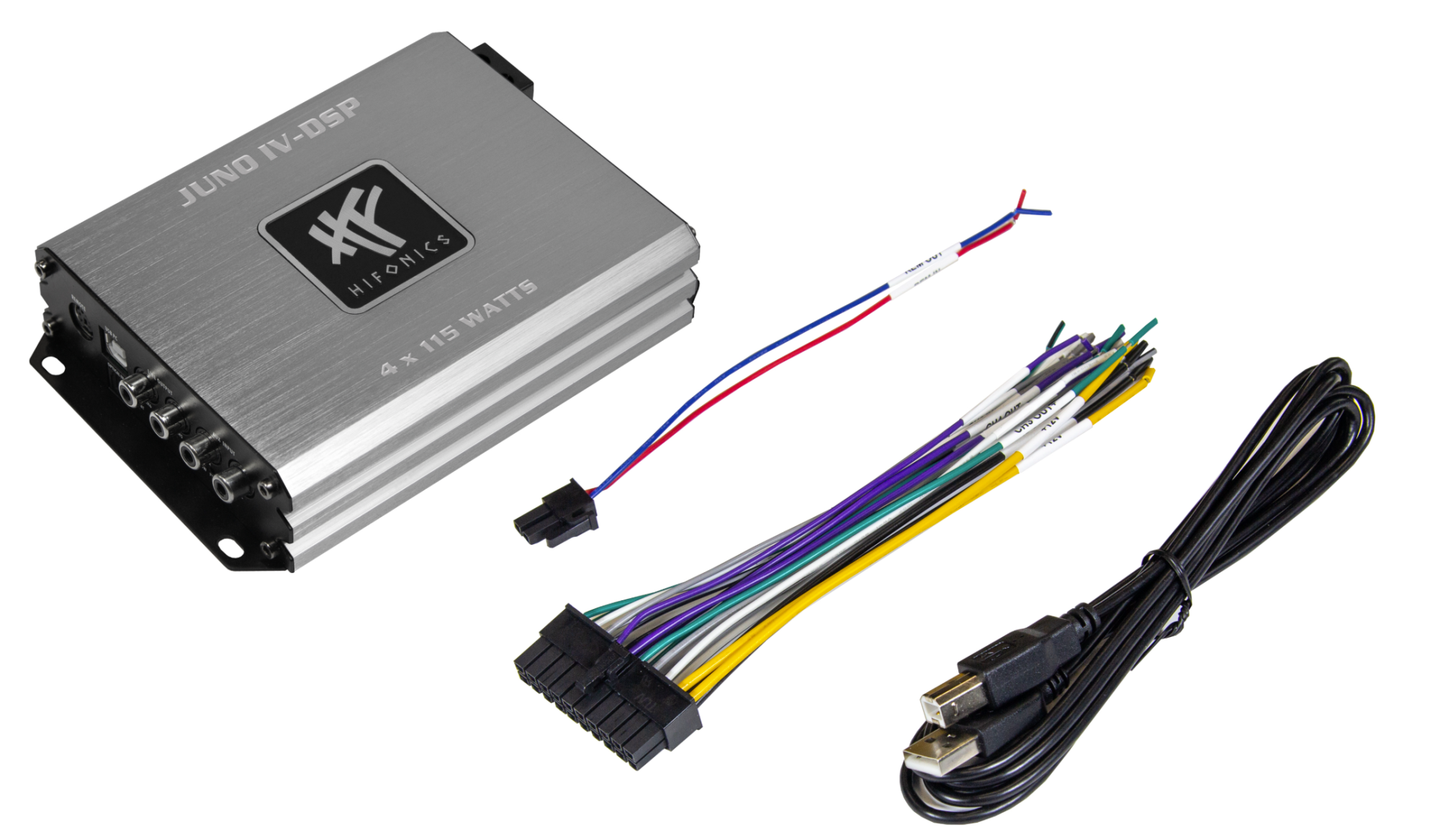 4-channel amplifier with DSP, 4 x 75 (4 Ω) / 4 x 115 W RMS (2 Ω), Class D