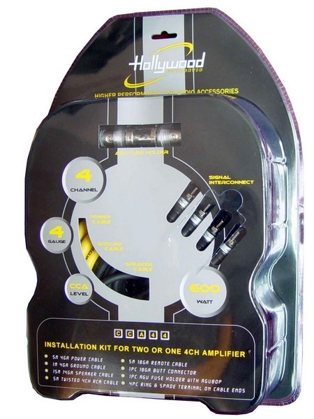 Complete cable set for connecting an external amplifier to the car. The set is designed for amplifiers up to 600 W RMS.Hollywood CCA 44 includes: