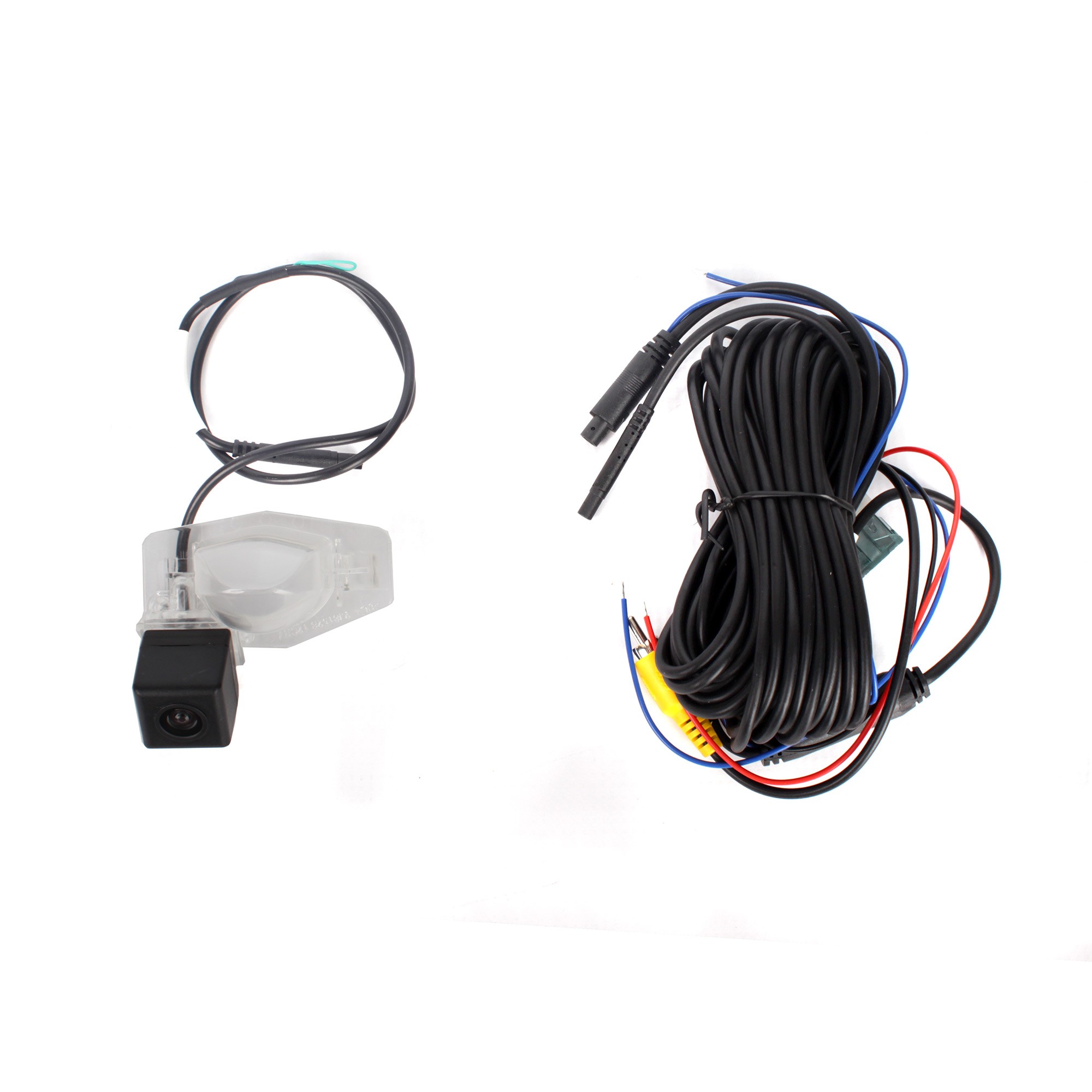 OEM color parking camera for installation in the rear license plate lamp. The camera includes a transparent cover to cover the original license plate light bulb.