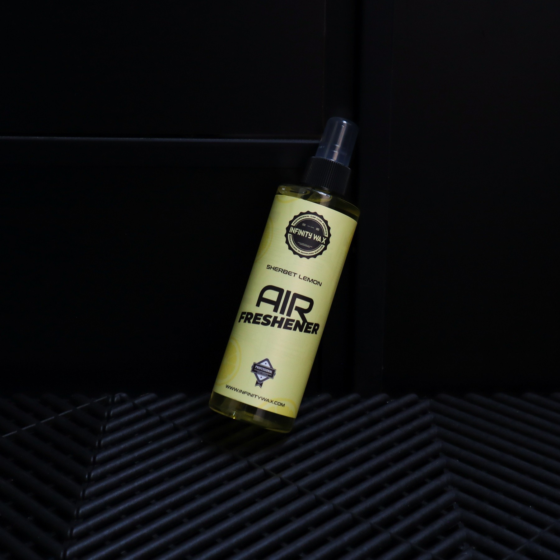 An intense water-based air freshener that smells like lemon candies. For an intense scent, you can spray the air freshener freely into the interior of the vehicle or directly onto the carpets. A scent that lasts for weeks. The air freshener is intended for use only in the interior of the car.How to use Infinity Wax air freshener