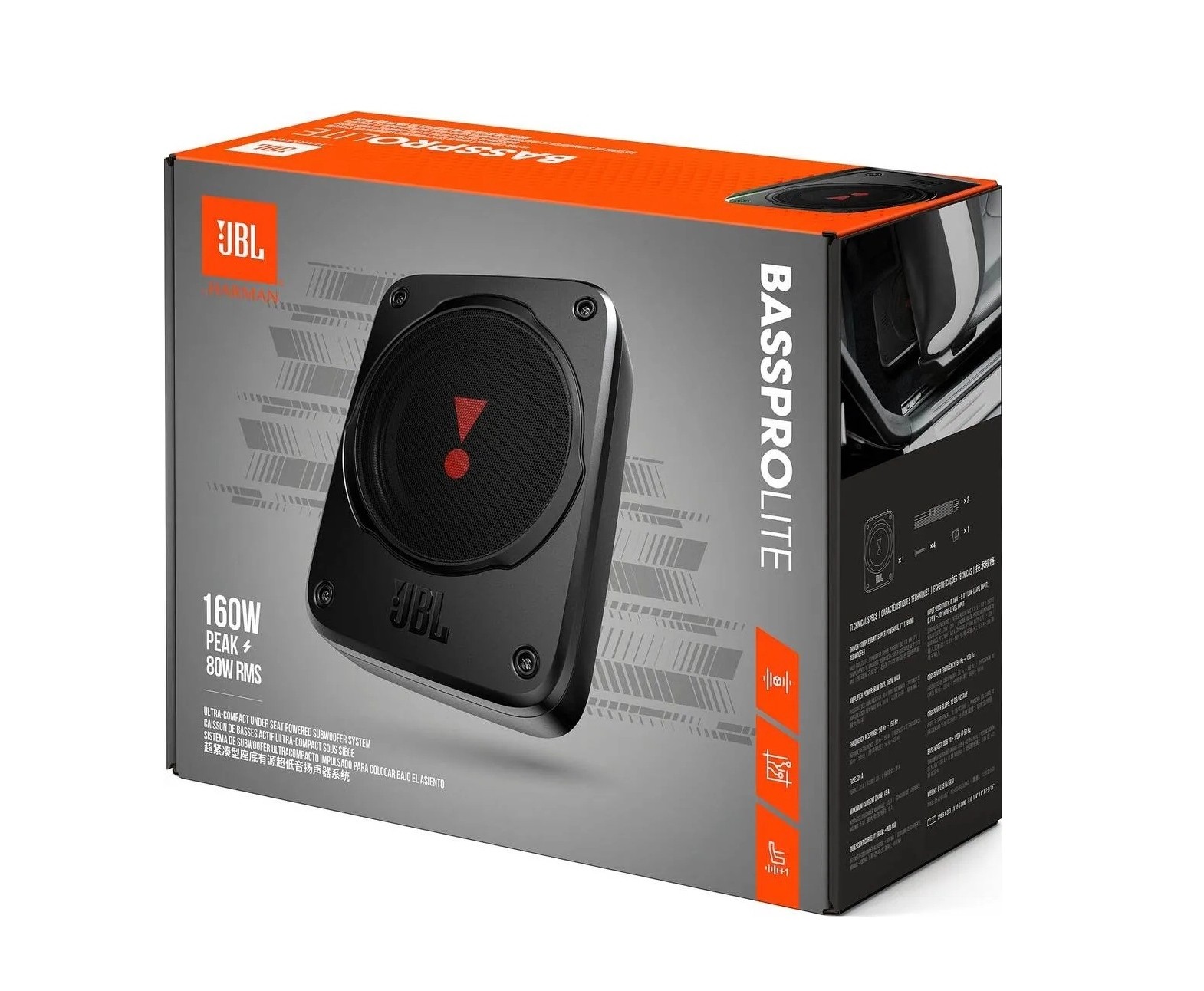 The JBL BassPro LITE is an ultra‑compact active subwoofer designed for installations with minimal space where a conventional subwoofer cannot be used. Despite its size, it manages to deliver surprisingly deep, tight and accurate bass characteristic of the JBL brand. Thanks to the integrated 100 W RMS amplifier, the subwoofer’s power is perfectly matched to the driver, ensuring controlled bass performance with low power consumption and cool operation without undue strain on the vehicle’s electrical system.