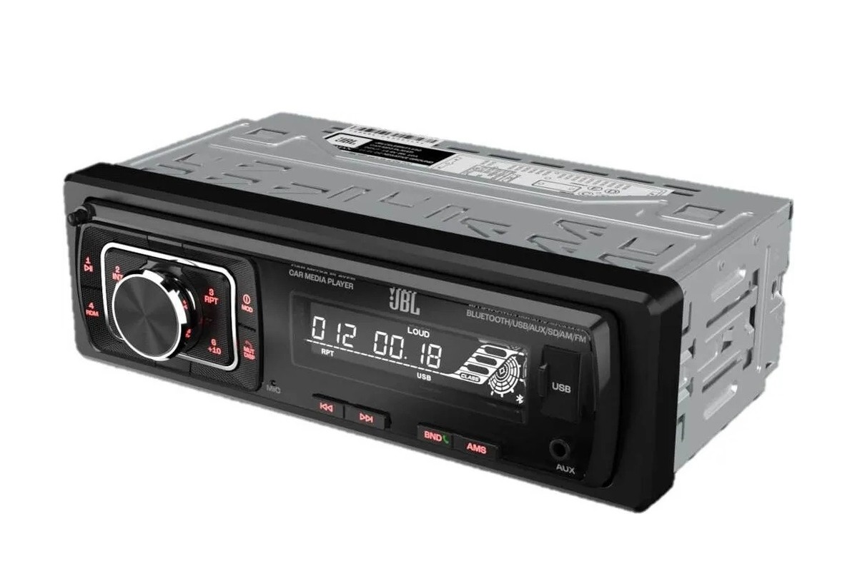 1DIN car radio, Bluetooth, USB, AUX, SD, red button backlight, 2x RCA (4V)