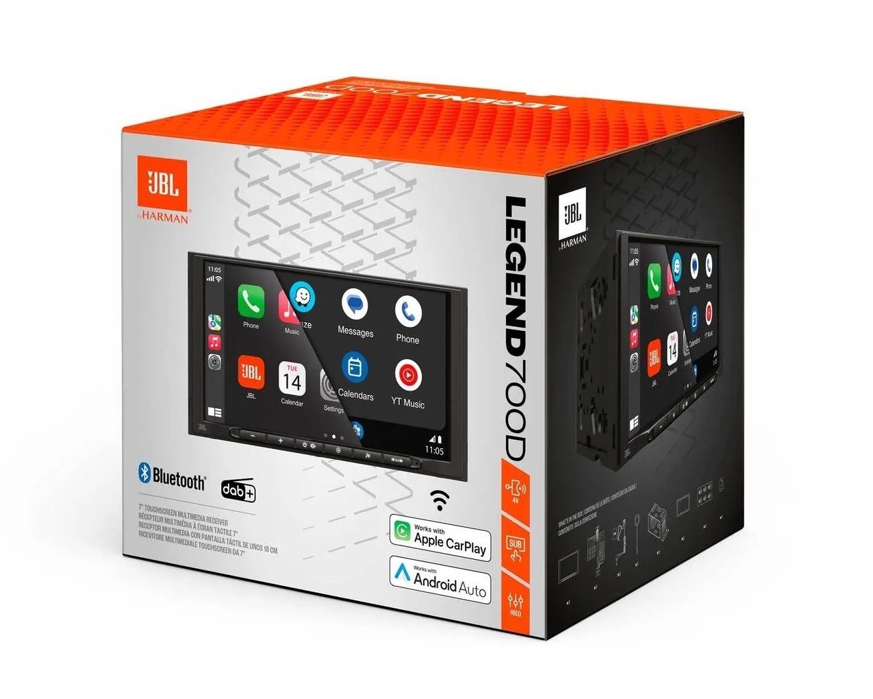 2DIN car radio, 7" LCD, Bluetooth, USB, AUX, SD, Apple CarPlay and Android Auto, DAB/DAB+, white button backlight, 3x RCA (4V)