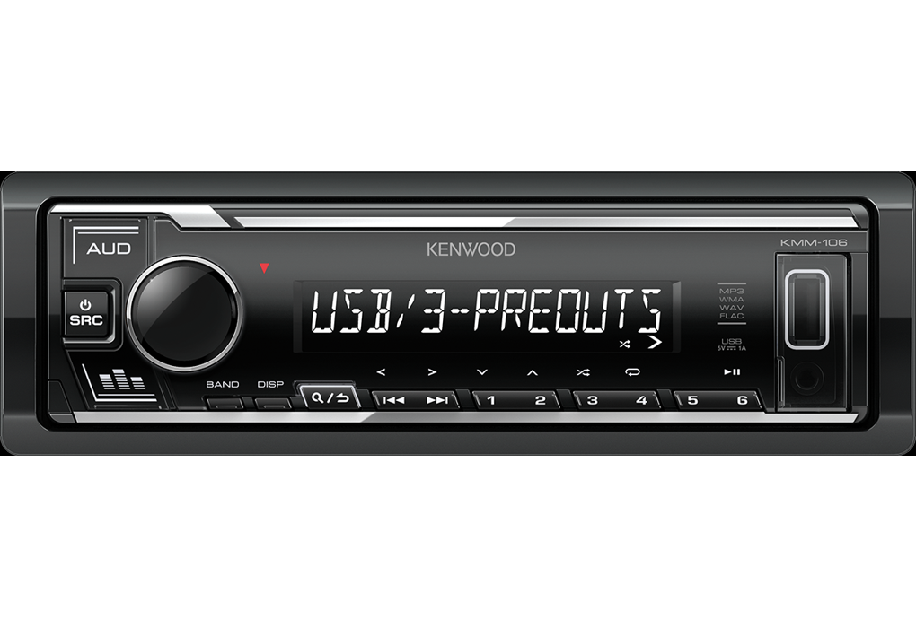 Basic branded Kenwood car radio without CD drive with desired white backlight. The white backlight is suitable for most vehicles.General specifications of the Kenwood KMM-106 car radio