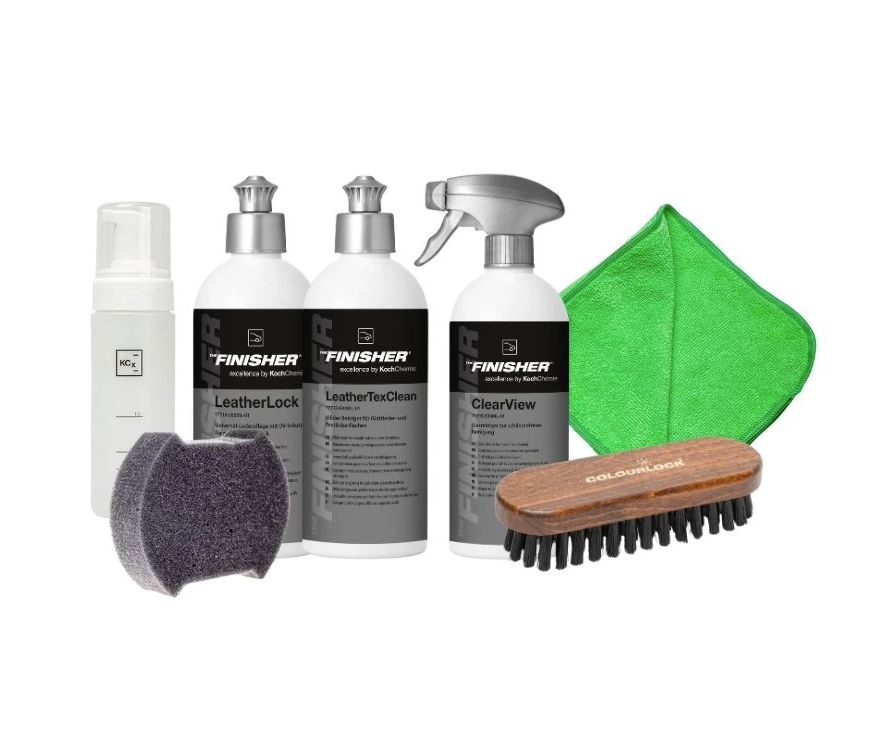 set for cleaning leather interior elements with a 20% discount, which combines leather cleaner, leather treatment, glass cleaner and practical accessories for convenient application
