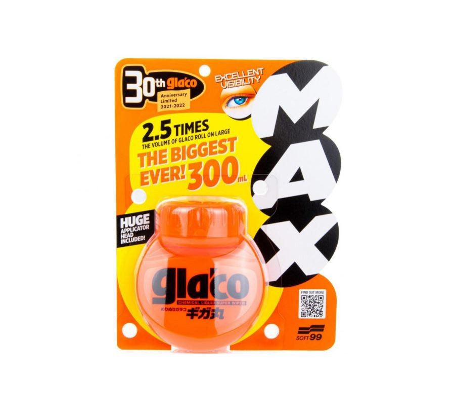 Soft99 Glaco Roll On MAX 300 ml is a limited edition of liquid car windshield wipers in a convenient 300 ml maxi package. Glaco Roll On is an ideal option for providing windows with a protective layer of coating. Glaco creates an invisible protective layer on windows and mirrors with excellent beading from speeds as low as 45 km/h. Glaco Roll On is an excellent product in any weather - in winter it prevents frost on the windows. The lifetime of the wipers is at least 3 months after application. Volume 300 ml, new bottle shape and the same excellent properties that have guaranteed Soft99's world-leading position in the field of hydrophobic coatings for glass surfaces for more than 30 years. Glaco Roll On Max is one of the easiest ways to ensure a safer and more comfortable ride in the rain. By creating a hydrophobic film on the surface, you enable water droplets to be blown off the windshield at speeds as low as 45 km/h! This makes the Glaco Max Roll On ideal for riding in the city, but also for long journeys and even in winter, reducing the build-up of ice! The large capacity of the limited edition Max also means higher efficiency - up to 20 applications.