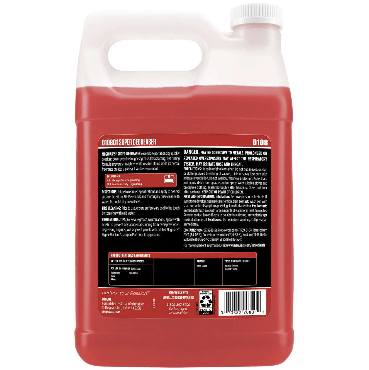 Meguiar's Super Degreaser excels with perfect cleaning and degreasing capabilities for removing the toughest and most stubborn dirt. It is safe to use on painted surfaces, textiles, plastics, tires and other types of surfaces. In addition, it contains fabric softeners, which ensure the softness and suppleness of fabrics after cleaning, and thanks to a very pleasant perfume, the interior or other cleaned surface and its surroundings will smell good. This product works on the principle of foaming - in the structure of the cleaned surface, when in contact with a brush, brush or cloth, it foams slightly and thus releases dirt from the surface. By subsequent wiping or vacuuming, you will achieve a perfectly clean surface. In addition, its composition prevents re-contamination, which is a frequent shortcoming when using some competing cleaners. Do not use on polished metals without topcoat. Do not let the product dry on the surface!