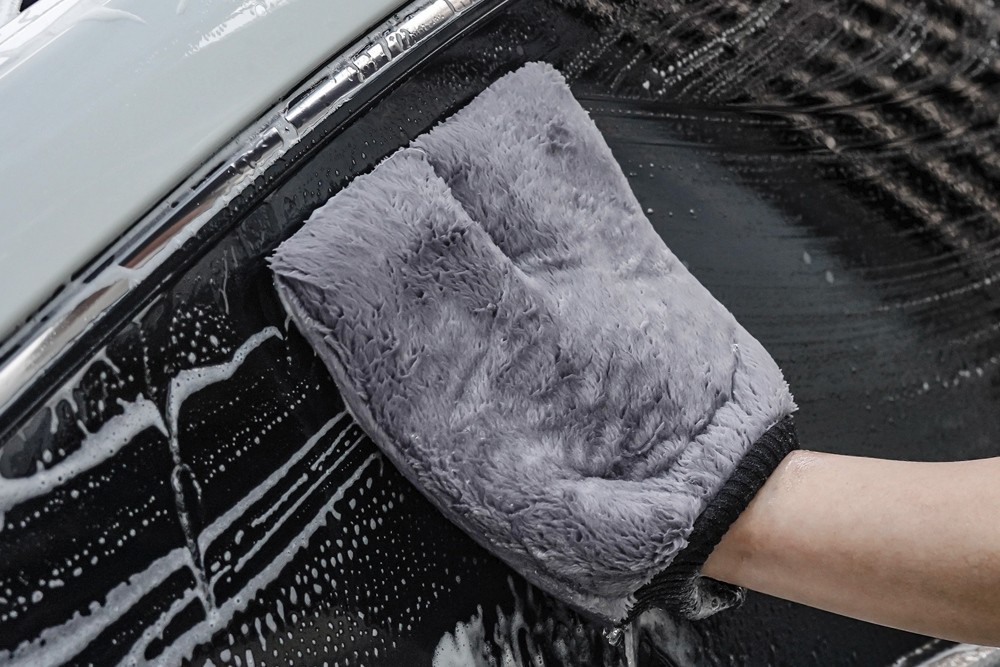 The Purestar microfiber washing glove is made of fine microfibers of the highest quality. The plush microfibers glide safely over the paint, lift and capture dirt, and easily remove it from the paint surface. The light gray color of the microfibres will always tell you when the glove needs to be rinsed in water to ensure the safest possible wash. Like all Purestar products, the Plush Washing Mitt is made in South Korea. The glove has a weight of 380 g/m² and dimensions of 20 x 25 cm.