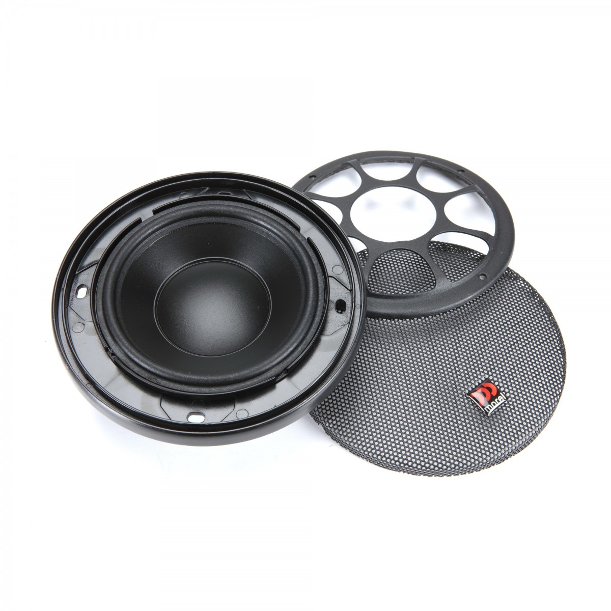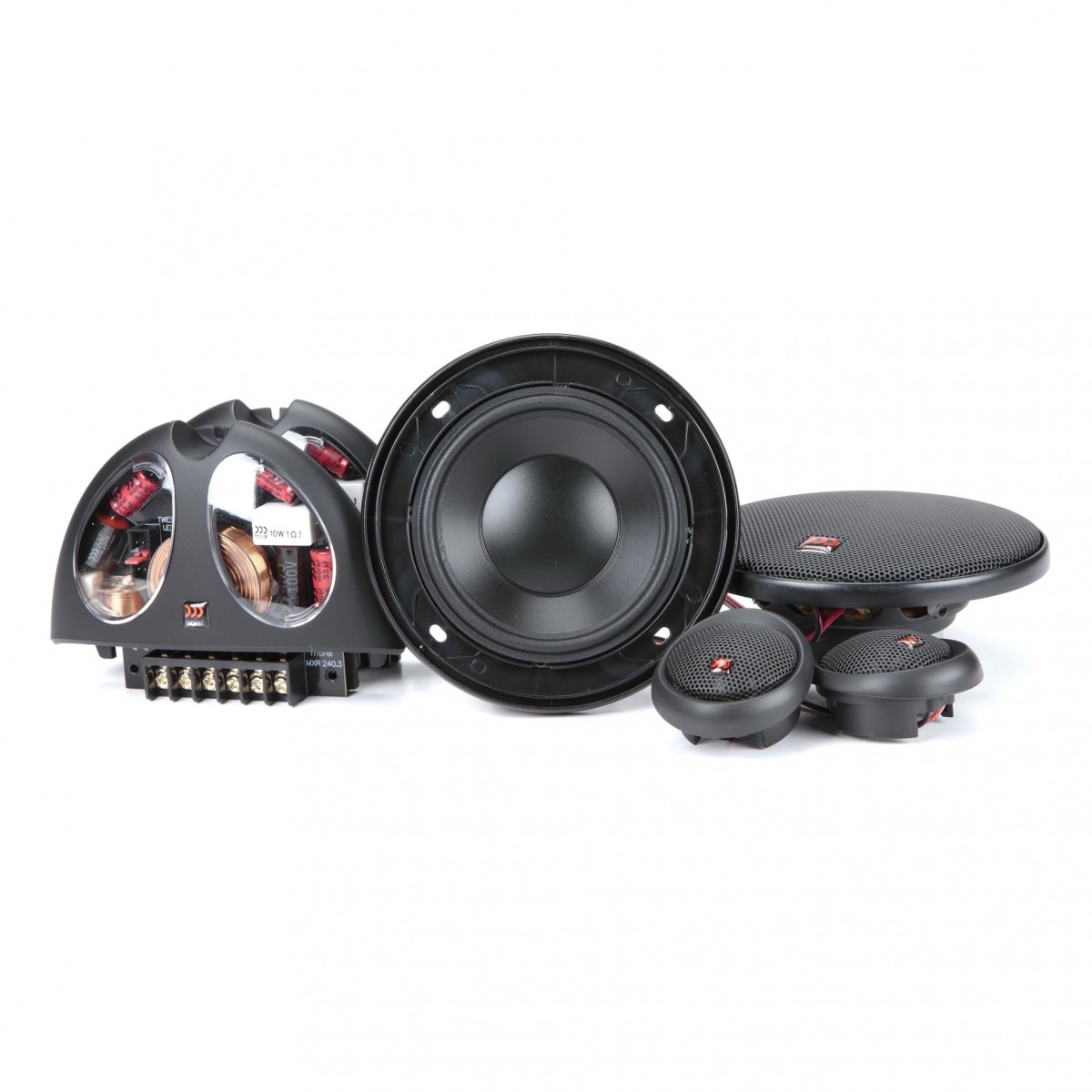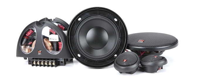 | Speaker typeCoaxial speakers: Coaxial speakers are characterized by a so-called all-in-one design. The tweeter and mid-bass speaker are in one basket. The advantage is simpler assembly, but thanks to the connection or proximity of the bands in one speaker, the sound quality will usually be reduced. As a rule, in the middle of the mid-bass speaker, there is a tweeter whose voice coil works in the second air gap of the common magnetic circuit. The three-way coaxial speaker consists of a mid-bass speaker, a center speaker and a separate tweeter in the front on a special beam. Component Speakers: Component speakers are characterized by a division into individual frequency bands, treble + mid-bass + or. bass band. The individual speakers can be placed completely separately, which results in a better sound and acoustic performance. In the vast majority of cases of component speakers, an external crossover is also supplied, which divides the treble, middle / mid-bass, and into the three-band the bass band or allows setting the decibel level of the tweeter (e.g. +2 dB, 0 dB, -2 dB), steepness (e.g. 6dB/Oct. 12dB/Oct.) or active or bi-amp connection. | Component 2-band |