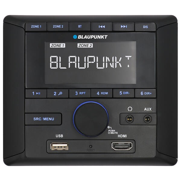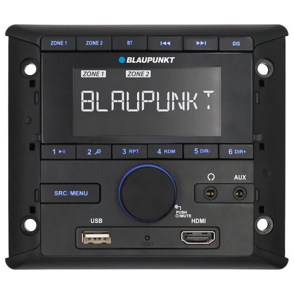 Multifunctional audio center for motorhomes and caravans with DAB+/FM/AM tuner, Bluetooth streaming and transmitter, USB playback, AUX, HDMI Pass-Through and multi-zone sound control