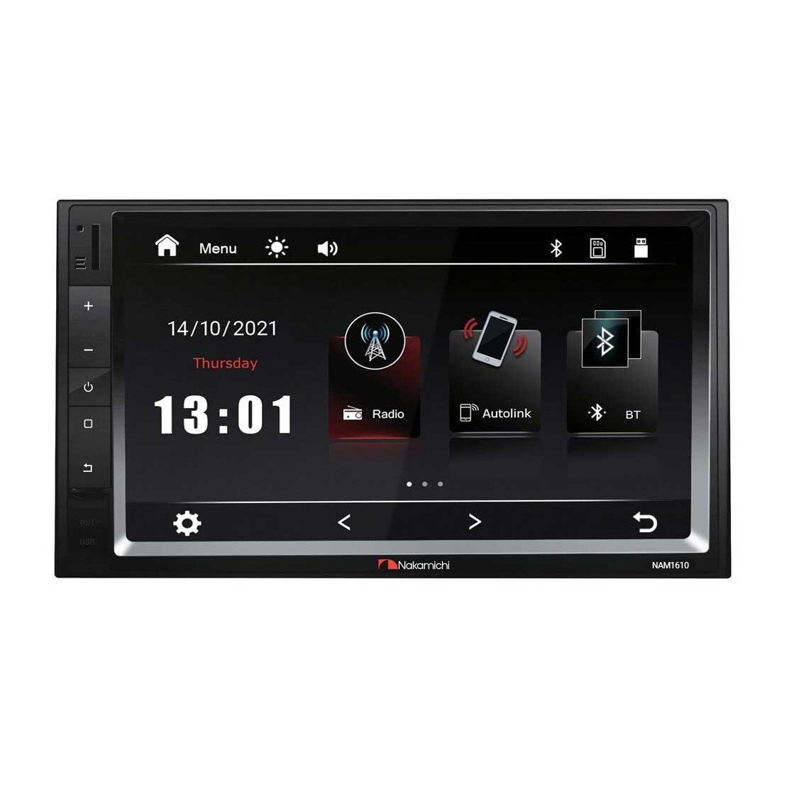 Nakamichi NAM1610 is a 2DIN car radio without a mechanism, which has a 7" touch screen. On the front, you will find a USB input through which you can play your favorite music or multimedia. For the same purposes, you can also use the second slot, which allows you to insert a microSD card. Of course there's also Bluetooth for secure phone calls and music streaming. The microphone is integrated in this model. You can choose the color of the buttons as you like thanks to the variable backlight, and you'll also find a remote control in the packageThe most interesting features of the Nakamichi NAM1610 car radio