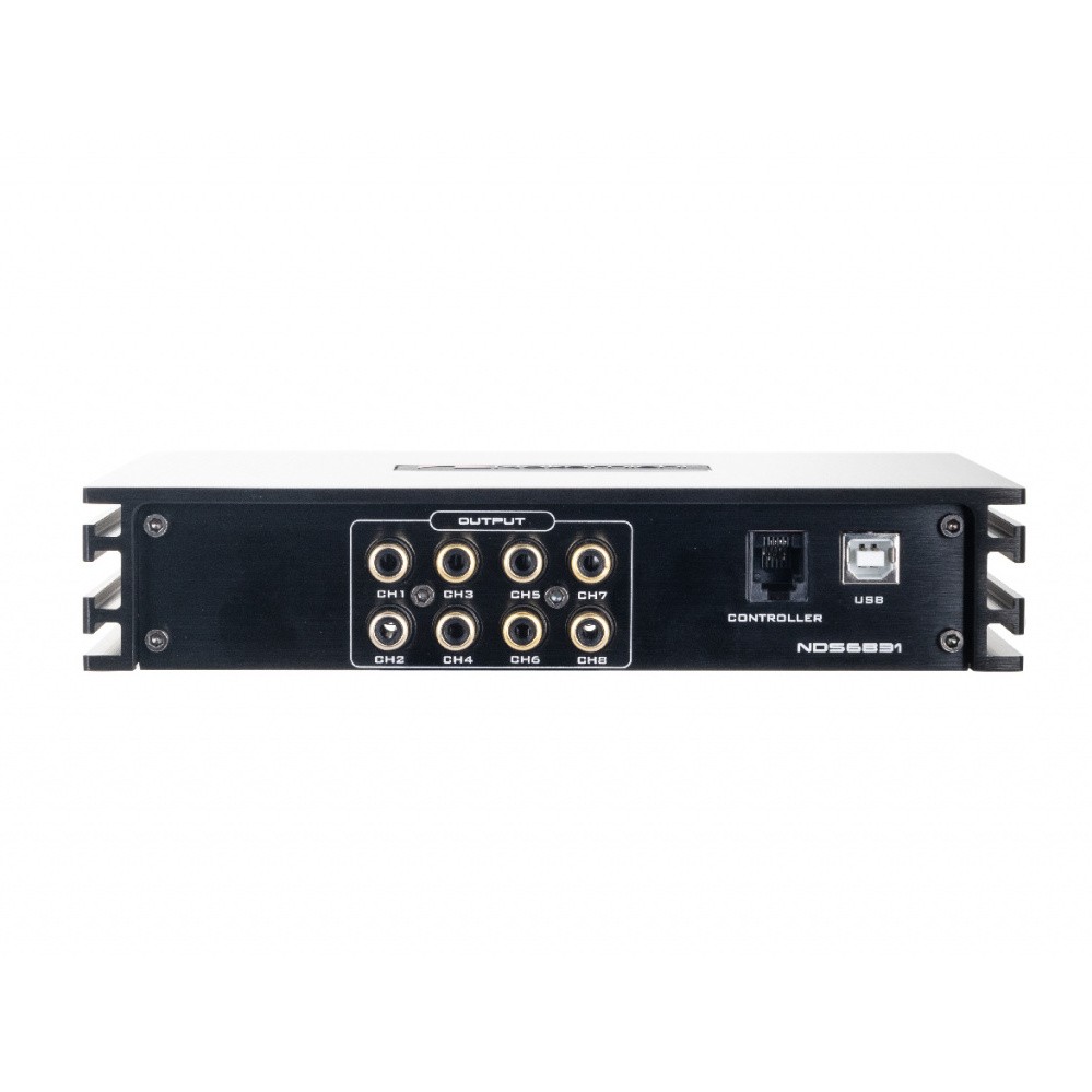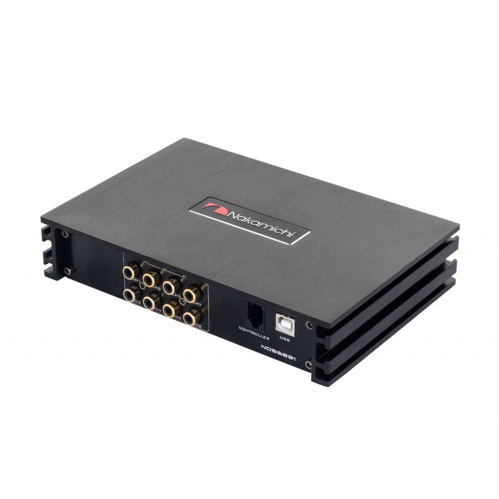 Nakamichi NDS6831 is an eight-channel DSP processor from the Japanese manufacturer Nakamichi. The processor impresses at first sight with its luxurious design made of brushed aluminum in black and exemplary workmanship. It is the DSP processors that make Nakamichi stand out in this price category. In addition to the design, which could be inspired by better-known manufacturers here, the very rich equipment with high-quality internal components, the well-thought-out and very intuitive program of the DSP processor, the possibility to control everything via an application in a smart device and, last but not least, music streaming via optional, will surprise you. In the DSP processor program, you can set speaker power, bandpasses, phase, slope, time corrections and also a 31-band equalizer. Of course, there are high-level inputs, an optical input, 6 RCA inputs and 8 RCA outputs.