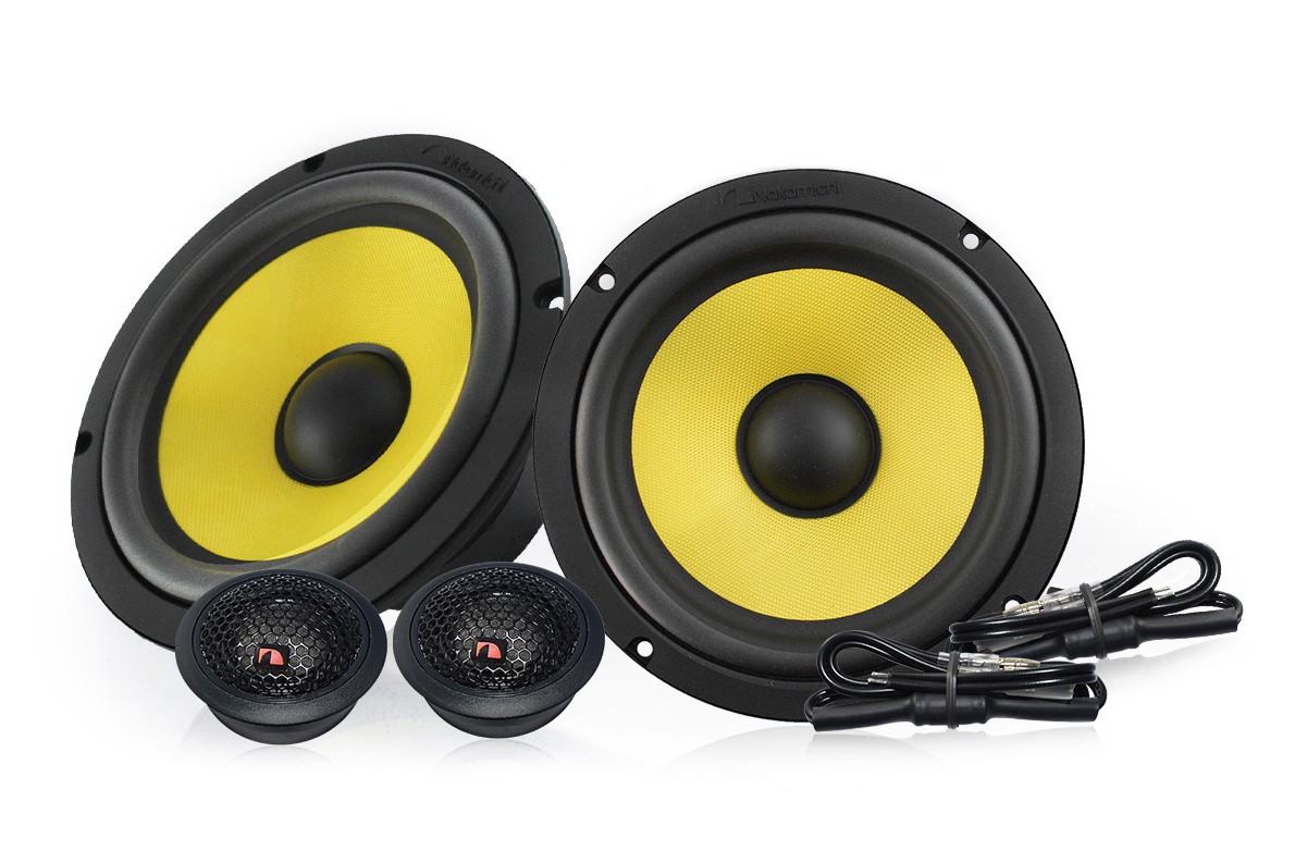 The new NSJ model series from Nakamichi presents more sonically advanced coaxial and component speakers after the basic NSE and NSF series. They are also characterized by higher quality materials used, exemplary workmanship and a more interesting design. The Nakamichi NSJ-CS610 component speakers feature a mid-bass composite membrane made of fiberglass, which catches the eye at first glance with its bright yellow design. This type of material is known for its high strength while maintaining a low weight. You can also rely on solid bass and an overall balanced sound of low and medium frequencies. The durable rubber suspension ensures flexibility and long life in the demanding conditions of the car. For the tweeter in Nakamichi, they bet on years of proven silk, which provides a natural and detailed sound. The 25 mm diameter cap is integrated into a well-designed housing with the Nakamichi logo. The NSJ-CS610 speakers are primarily intended for factory car radios thanks to high real sensitivity, optimal performance and reduced impedance to 3 Ohms. Easy installation is ensured by compact crossovers - on the cable for tweeters and integrated on the basket for mid-bass speakers.