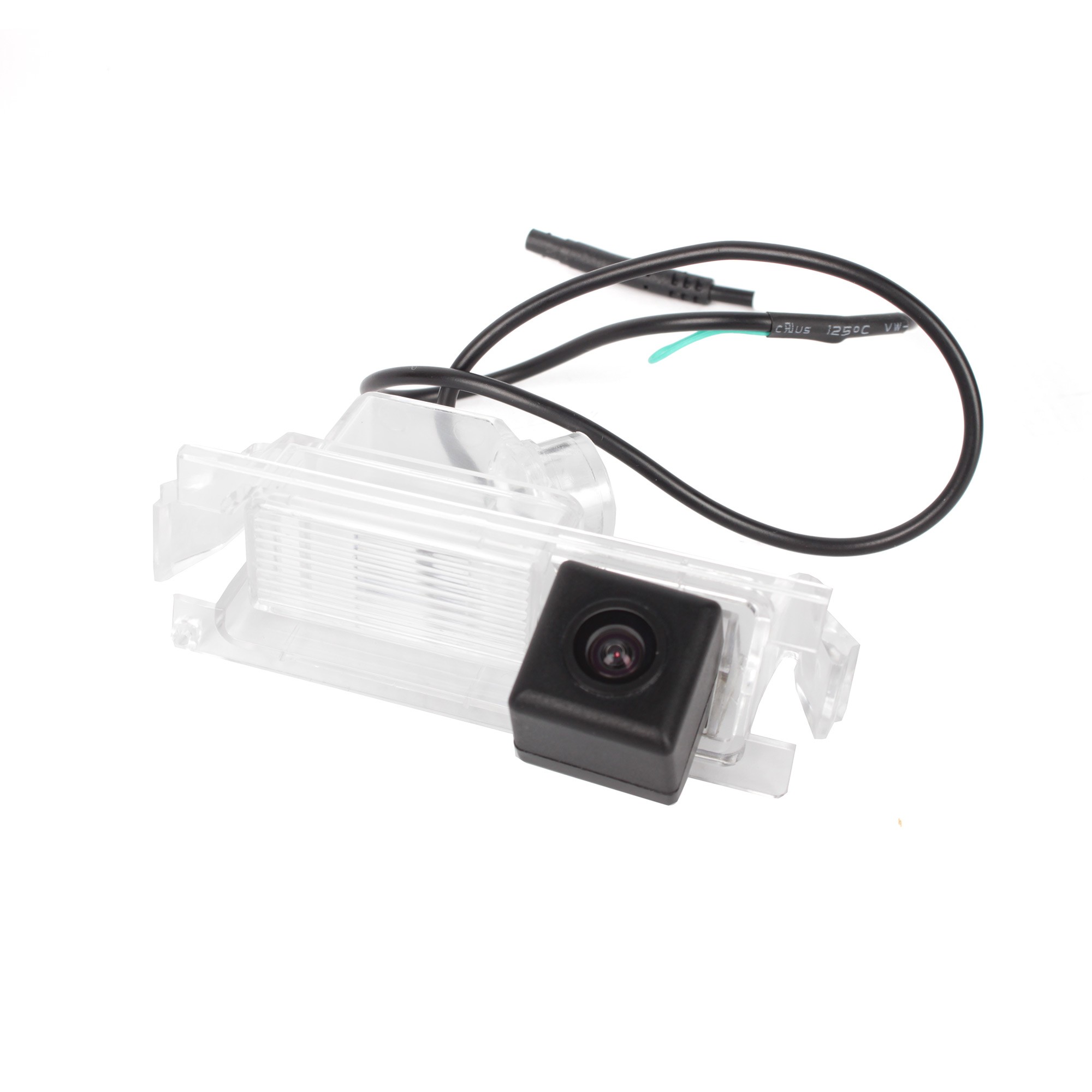 OEM color parking camera for installation in the rear license plate lamp. The camera includes a place to place the socket with the bulb from the original license plate light.