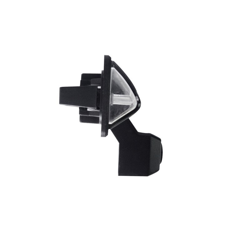 OEM color parking camera for installation into the light for illuminating the rear license plate. The camera includes space for the bulb socket from the original light.