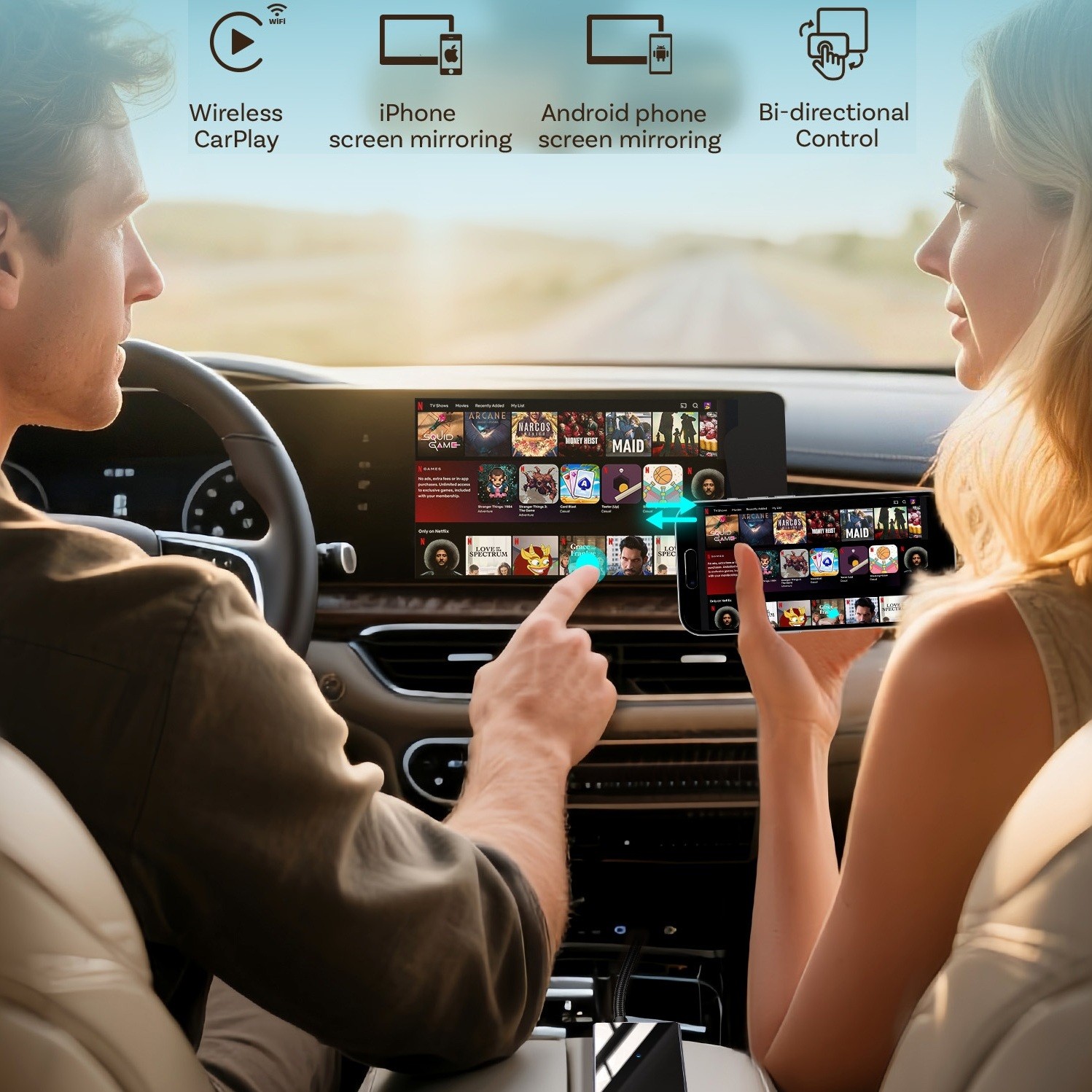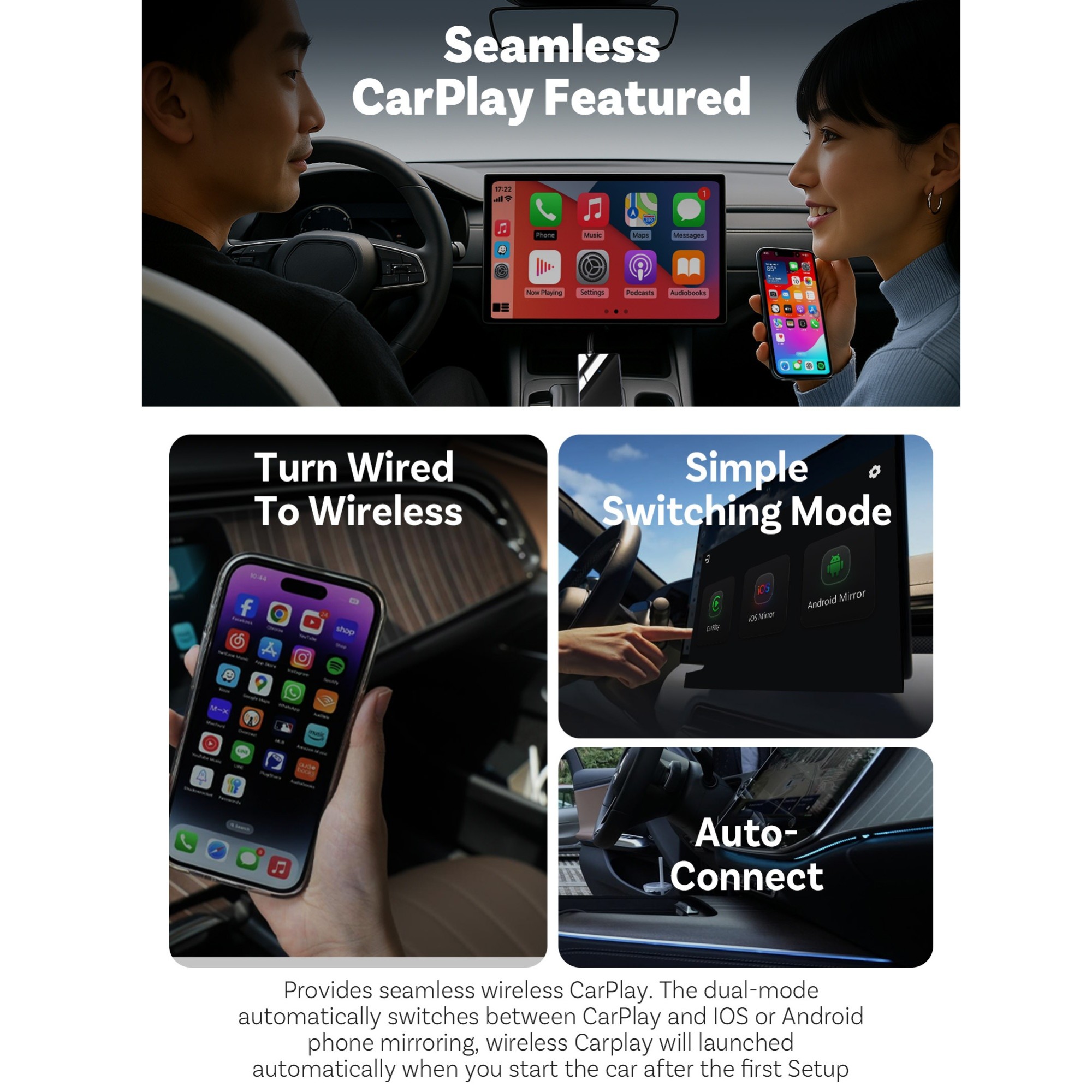 - Converts OEM wired CarPlay / Android Auto to wireless.