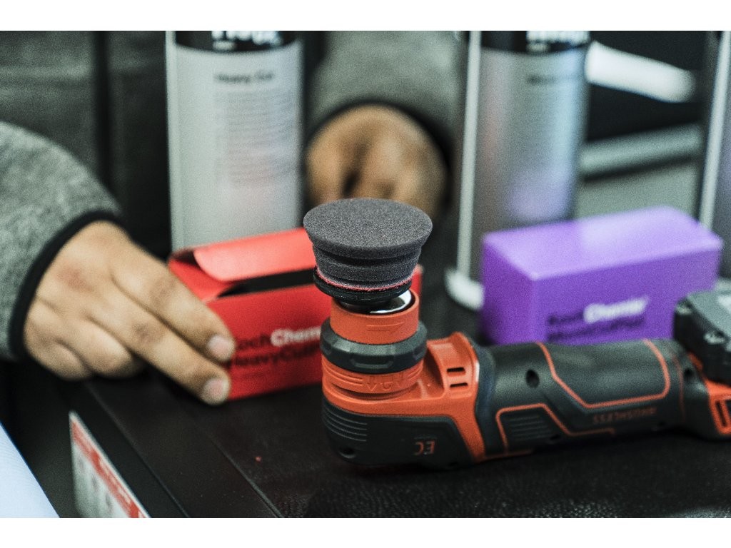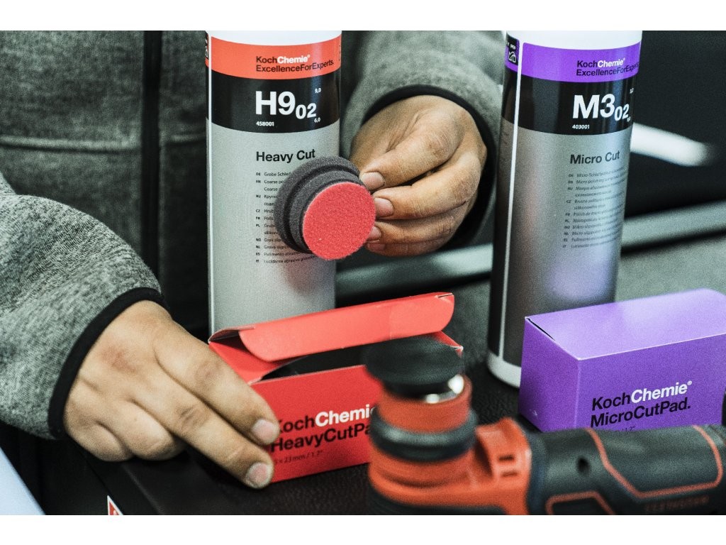 Abrasive polishing disc for polishing heavily weathered paintwork and removing deep scratches using the Heavy Cut H9.01 polishing paste. The small height of 23 mm causes low torsional forces, enables very good handling and the highest stability. The special density of the foam material allows for long-lasting stiffness with proportional compression during polishing. The milled edge allows for greater flexibility of the wheel and thanks to this the polishing wheel adapts better to the transitions of the body. The color marking of the polishing wheel is the same as the color marking of the polishing paste. This will further enhance proper use.