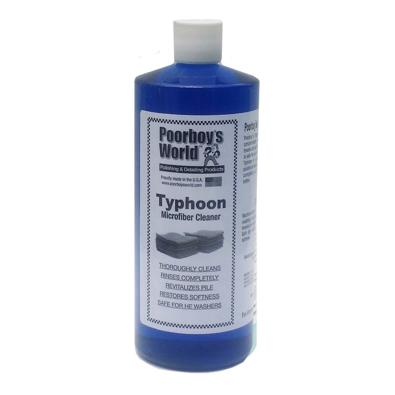 Poorboy's World Typhoon Microfiber Cleaner is a highly concentrated cleaner that can clean all microfiber towels, microfiber cloths, and microfiber applicators. It is a low sudsing cleaner that is safe for all HE (high performance) washing machines. Typhoon is particularly effective at removing wax, gloss and sealant residues from fibers, rinsing them to make towels softer and more effective. Poorboy's Typhoon Microfibre Cleaner has been designed to thoroughly clean microfiber towels.| Catalog number | PB-TMFC-32 |