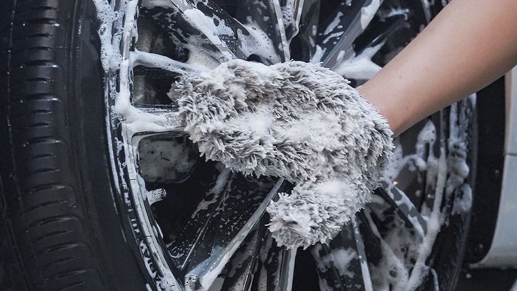 - Ultra-fine microfiber mitt primarily intended for wheel washing.