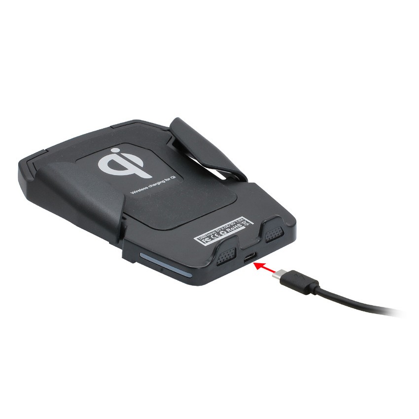 - The charging station supports inductive wireless charging with a Qi-compatible mobile phone.