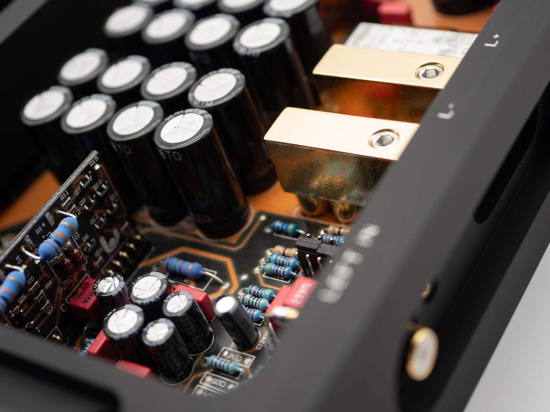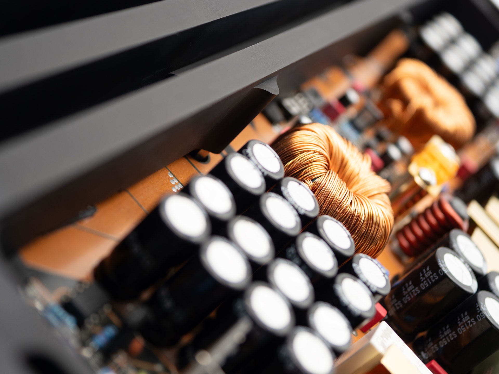 The power supply and amplifier stages are equipped with multiple large-capacity capacitors that ensure stable power and high current reserves. Only carefully selected components are used, whose precise placement, combined with short and wide signal paths, is one of the keys to the high performance and sound quality of these amplifiers.